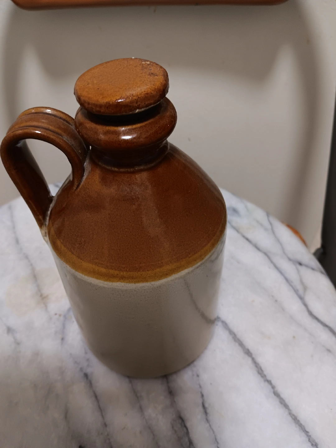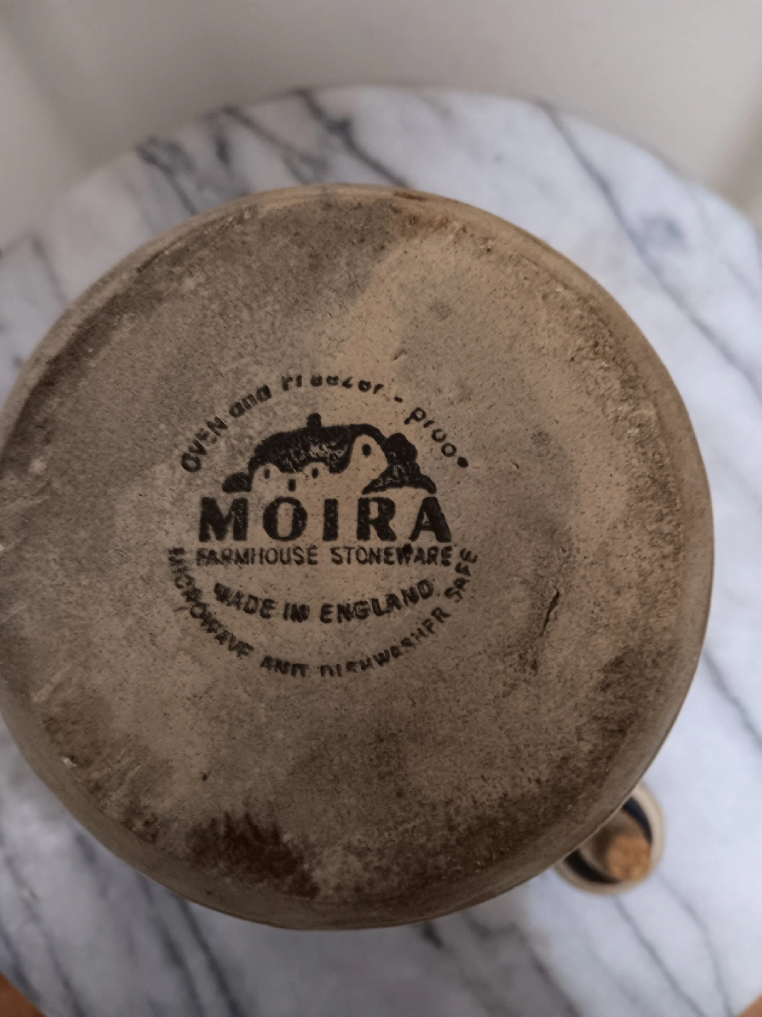 Here's a charming Wonnacotts Cornish Scrumpy Cider jug. It's marked as being made in Bude since 1900. The bottom is marked Moira Farmhouse Stoneware and says it's oven and freezer proof, as well as microwave and dishwasher safe