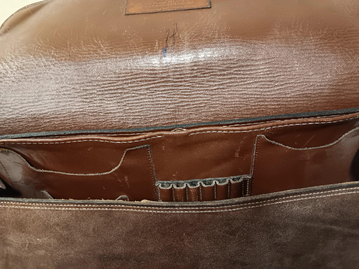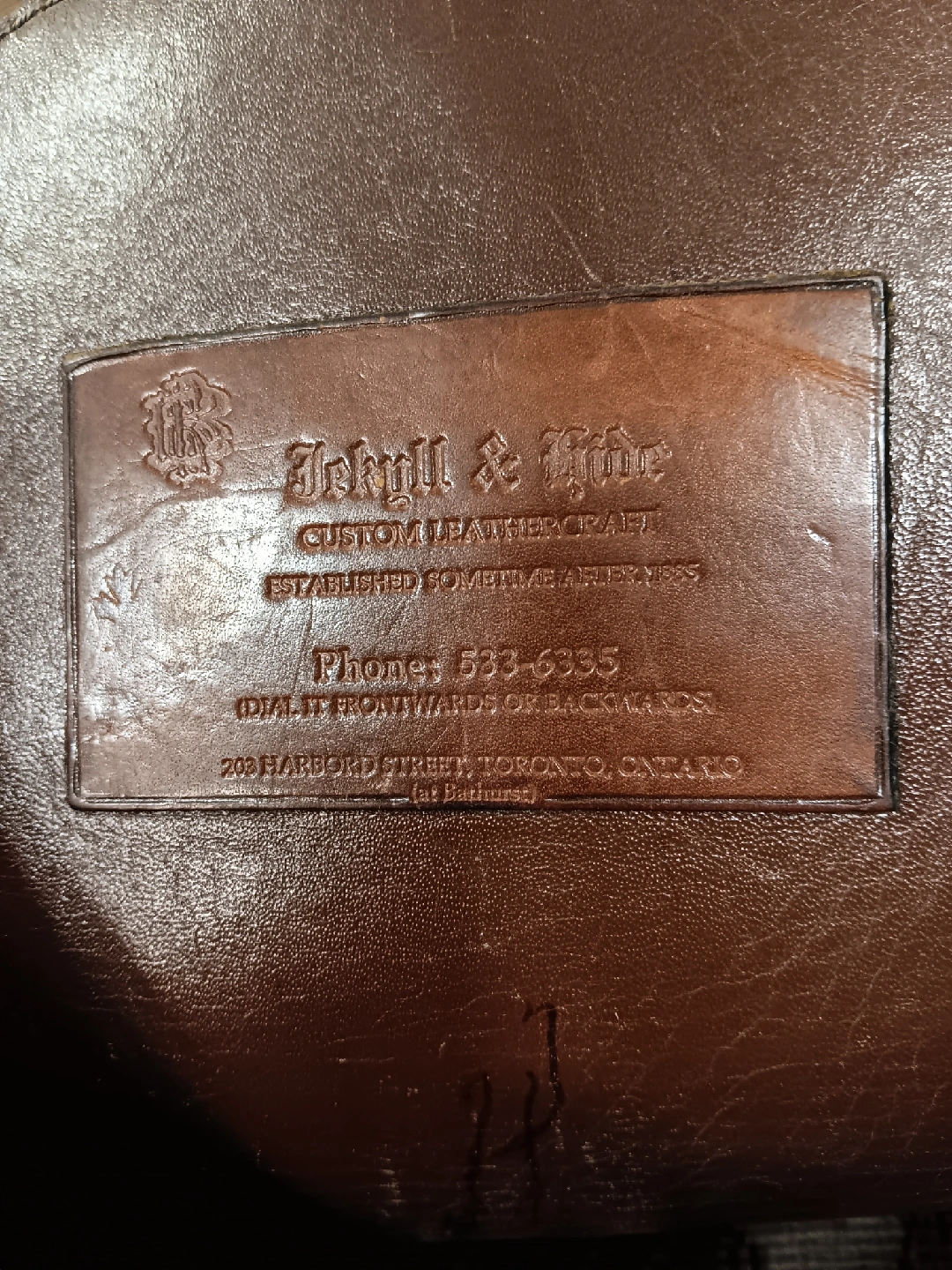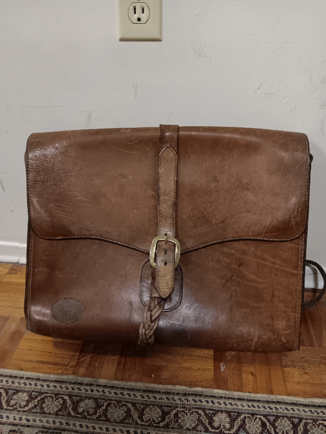 Beautiful brown leather briefcase from Jekyll & Hide. This custom leather craft bag is perfect for carrying your essentials in style. It features a unique braided design and sturdy construction, showcasing the quality craftsmanship from this Toronto-based company