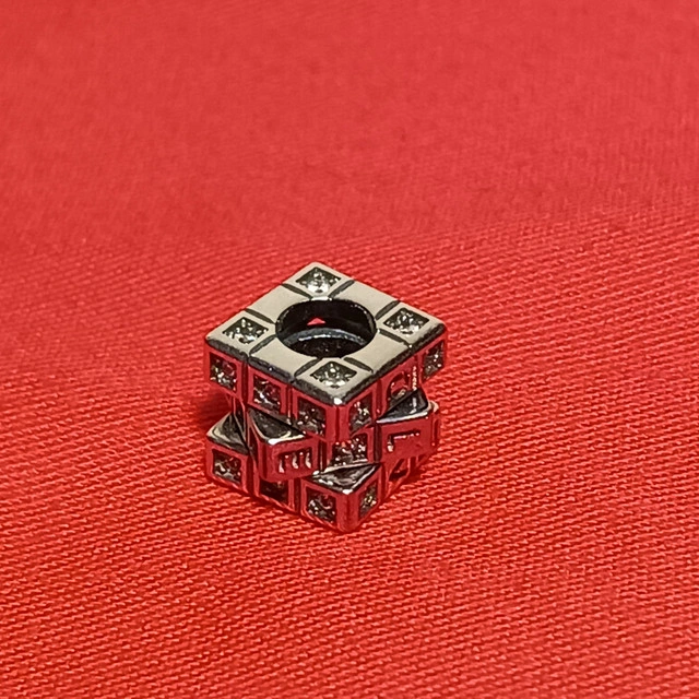 Add a touch of love to your Pandora bracelet with this adorable Love Cube Charm, crafted from sterling silver and detailed with sparkling cubic zirconia for a dazzling effect; this charm is used but still shines brightly and is ready to spread the love on your wrist! Specifications: Type: Charm Metal: Sterling Silver Stones: Cubic Zirconia Theme: Love Looking for a little love? This charm is like a tiny cheerleader for your wrist, whispering sweet nothings and reminding you that you're fabulous!