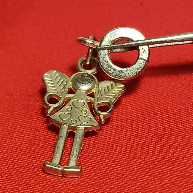 This is a used angel charm with a beautiful design, perfect for adding a touch of whimsy to your charm bracelet. While it shows some gentle wear, it's in good condition and ready to bring a little bit of celestial charm to your collection. This lovely piece is ideal for anyone who loves angels or unique jewellery pieces. I'm pricing it at $10.
