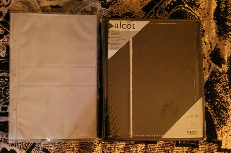 Selling a photo album with refills. The album is an Alcot brand photo album. It holds photos up to 4x6 inches (10cm x 15cm). Also included are Black's ID Photography refills. Each refill holds 80 photos and is PVC and acid-free