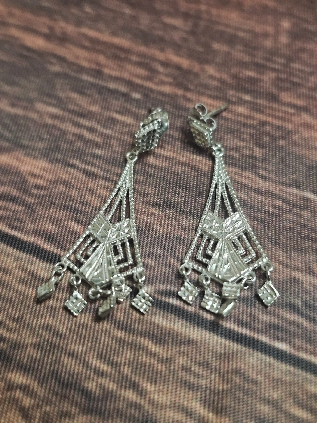 Selling a pair of beautiful art deco style earrings marked 14K White Gold. Just over 1 inch in length. These earrings are in great condition and would make a wonderful addition to any jewelry collection
