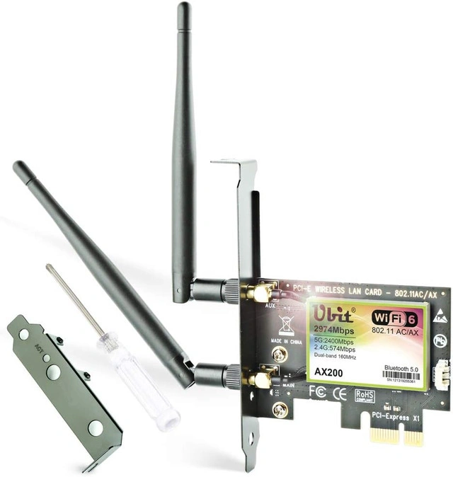 Ubit AX WiFi 6 Card Dual Band 3000 Mbps AX200 for Desktop Bluetooth 5.1. Data link protocol: IEEE 802.11ac, Bluetooth. NEW in open box. Selling price: $20