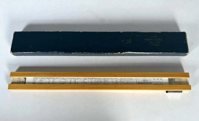 Vintage The Hughes-Owens Co. Ltd. 1768C ruler 25 cm bamboo slide rule with original case. Made in Japan by Sun Hemmi. Selling price: $30