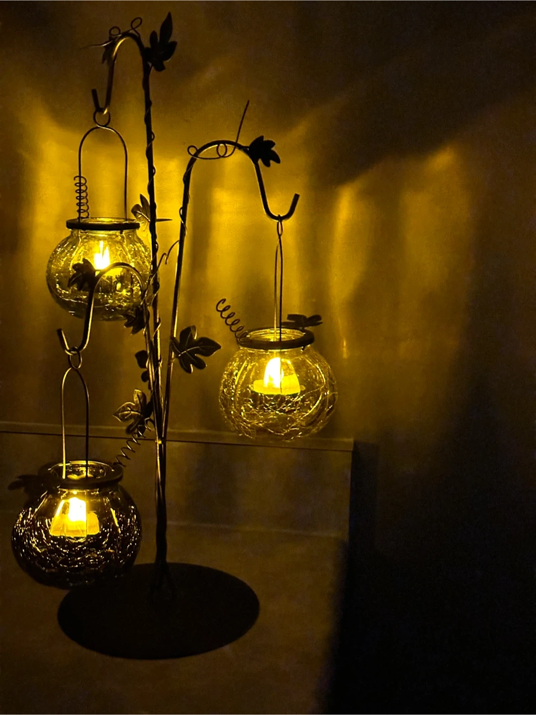 Enhance your autumn decor with this charming metal and glass candle holder, featuring a vine design with three glass candle cups. This piece has been used but remains in great condition, ready to add a warm glow to any room. Purchased at Pier 1. 18inches tall. This candle holder brings a touch of fall's beauty indoors, perfect for creating a cozy atmosphere. If the ad is up, it's still available, ready to light up your space! Candles not included Cash only Pickup McQueen Rd., Edm.