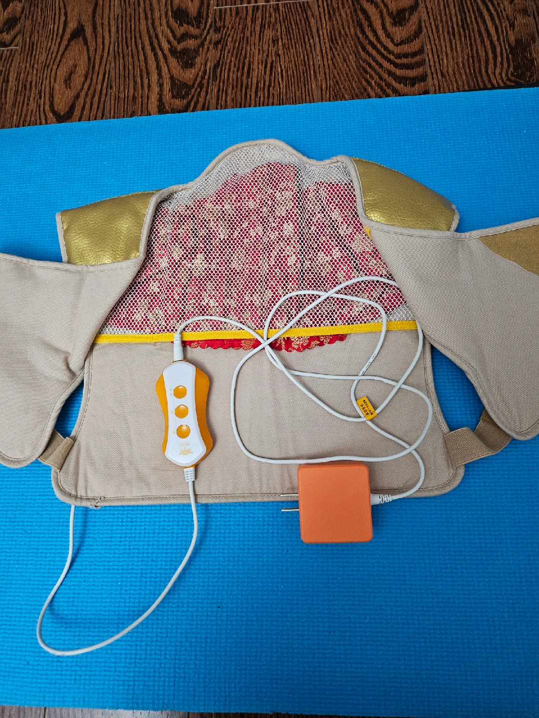 Electric heating shoulder , neck and back heating pad. It comes with a controller and power adapter. Perfect for relaxing those tense muscles!