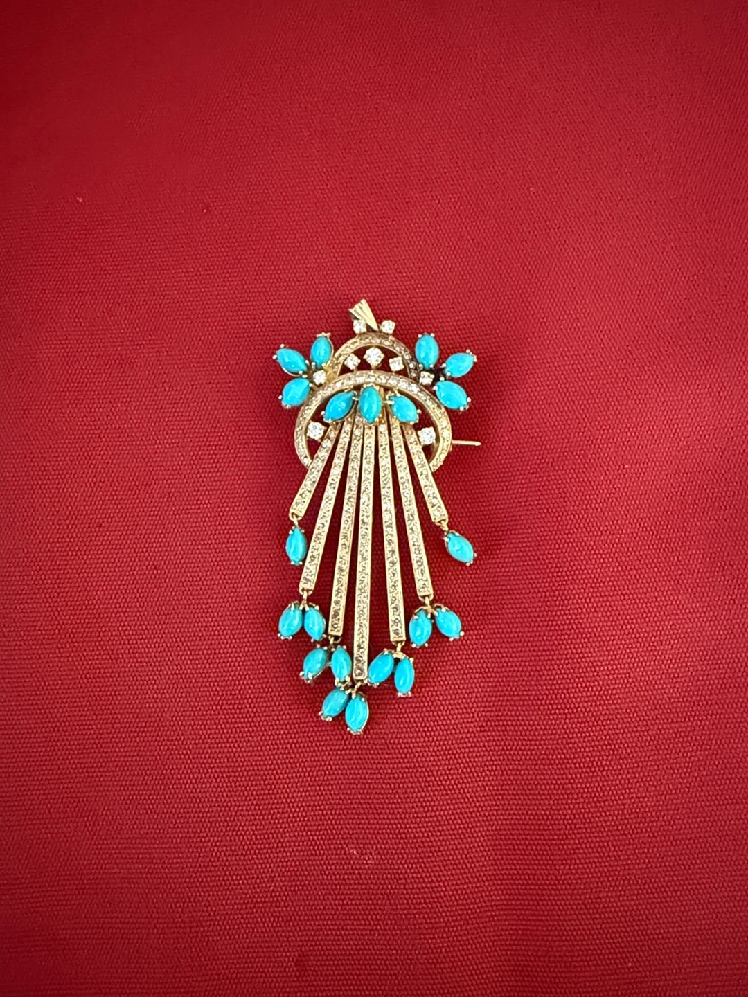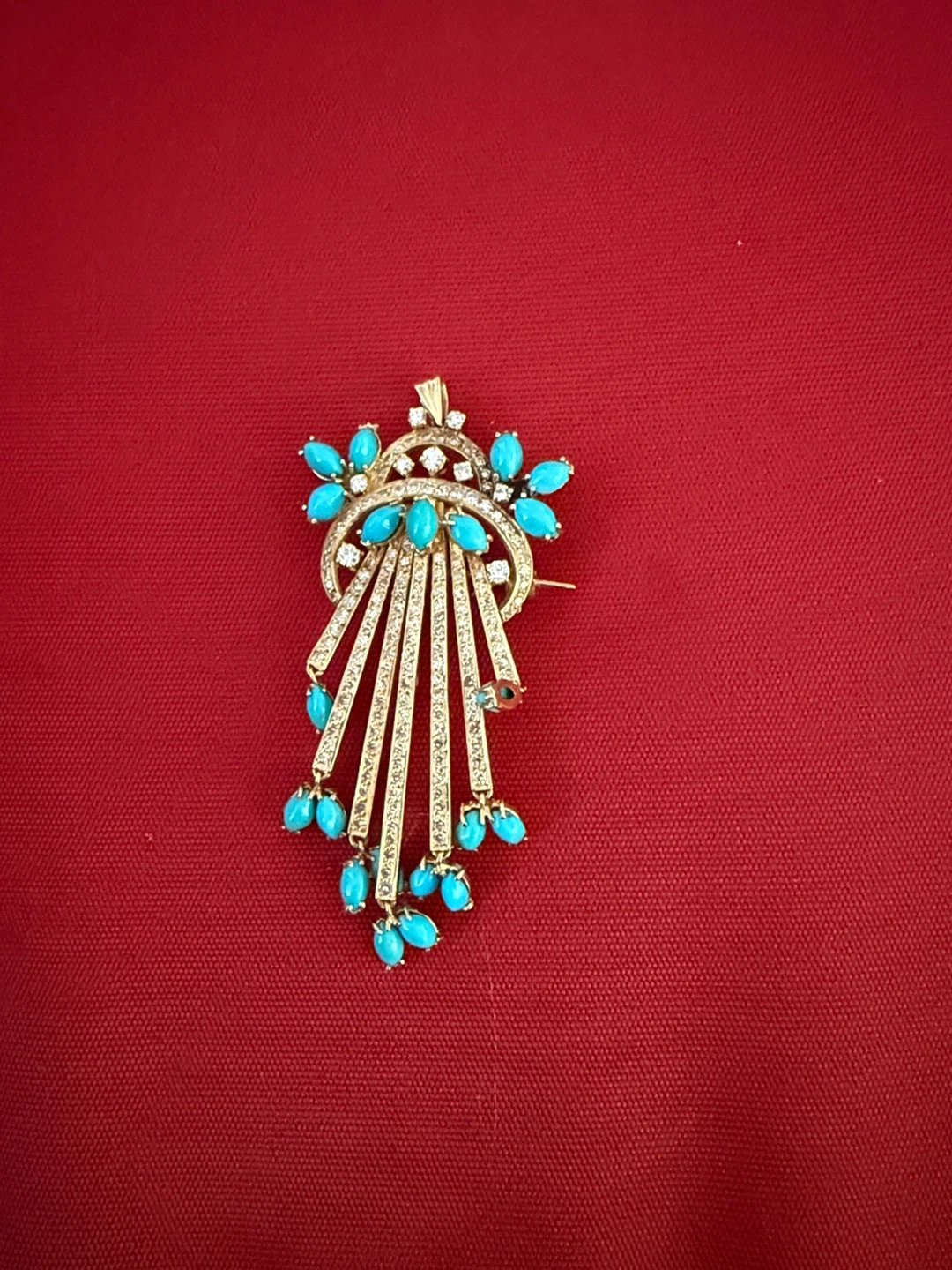 18k solid gold Vintage Brooch/Pendant with Turquoise Accents