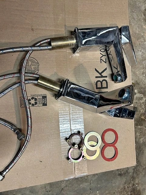 Set of 2 chrome bathroom faucets by Moorefield. Heavy duty with all the installation components. Only removed to change bathroom look.