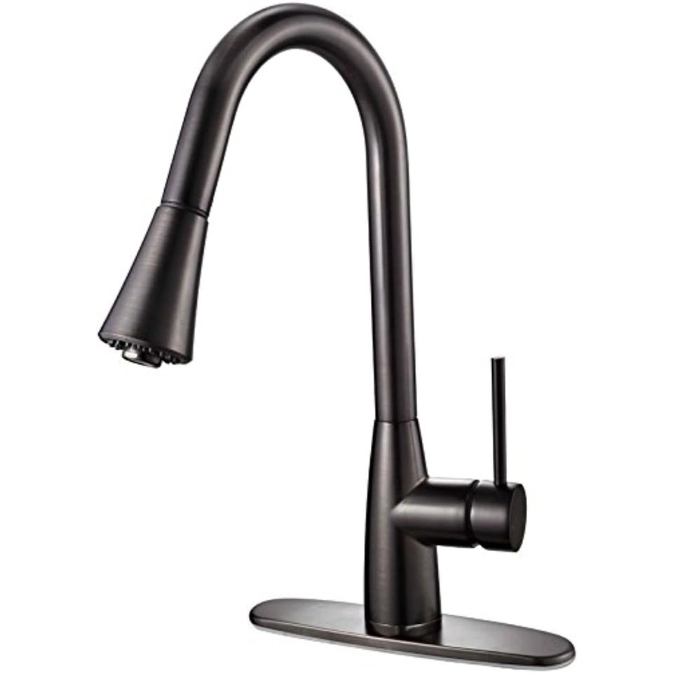 SINGLE HANDLE HI-ARC KITCHEN FAUCET Kitchen faucet with single handle Ceramic cartridge (replacement is 19-4867) Brass waterways Threaded brass nipple connectors With pull out spray Can be used with or without base Limited Lifetime Warranty - ADA Compliant Replacement Cartridge: 19-4867 Shank length 48.1 MM or 1.89" 16-3187 CB GNK KITCHEN FAUCET FINISH:Classic Bronze Item is located in Port Robinson, if the item is listed its available.