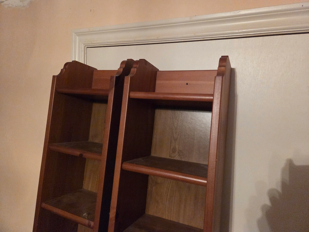Set of 3 matching shelves. Perfect for displaying a collection or knick knacks. You can paint them. Would prefer to sell as a set. If you see them then they are available...no need to ask if they are available.