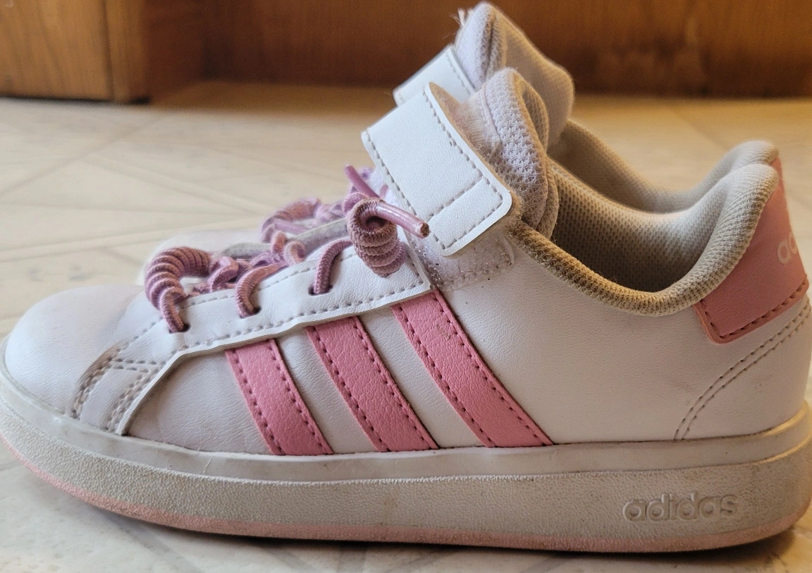 Selling a pair of Adidas Grand Court 2.0 sneakers for kids! They're in great shape and ready for a new home. These sneakers feature the classic Adidas three-stripe design in pink on a white base. The size is US 13.