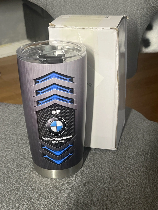 This stylish BMW tumbler is perfect for keeping your drinks hot or cold on the go. It features a sleek design with the BMW logo and the iconic slogan 'The Ultimate Driving Machine'. It's in new condition and comes in its original box. Additional features: * Keeps beverages hot or cold for hours * Durable stainless steel construction * Spill-proof lid * Fits in most cup holder. Pick up is in Brampton near Sheridan College Davis campus.