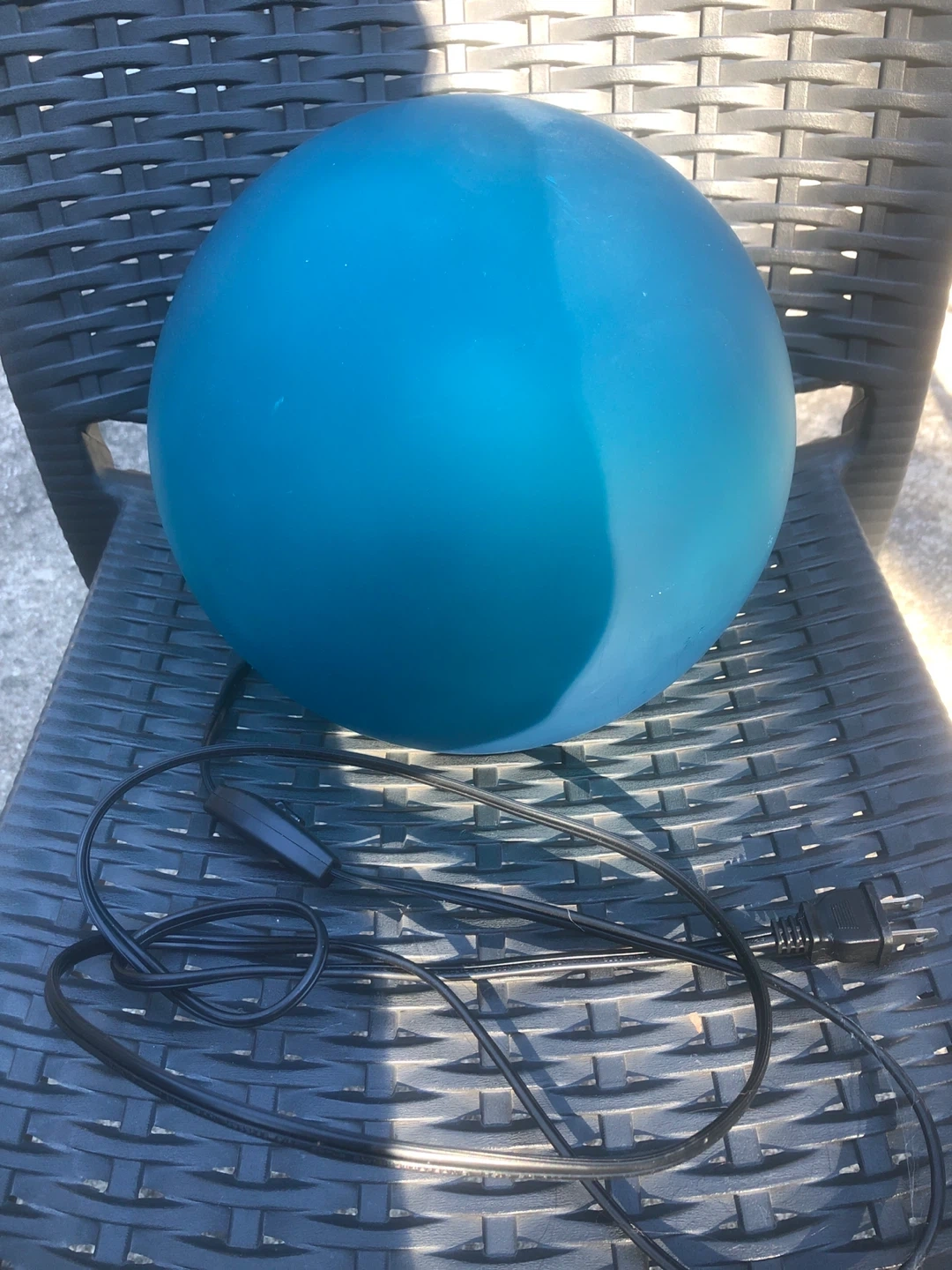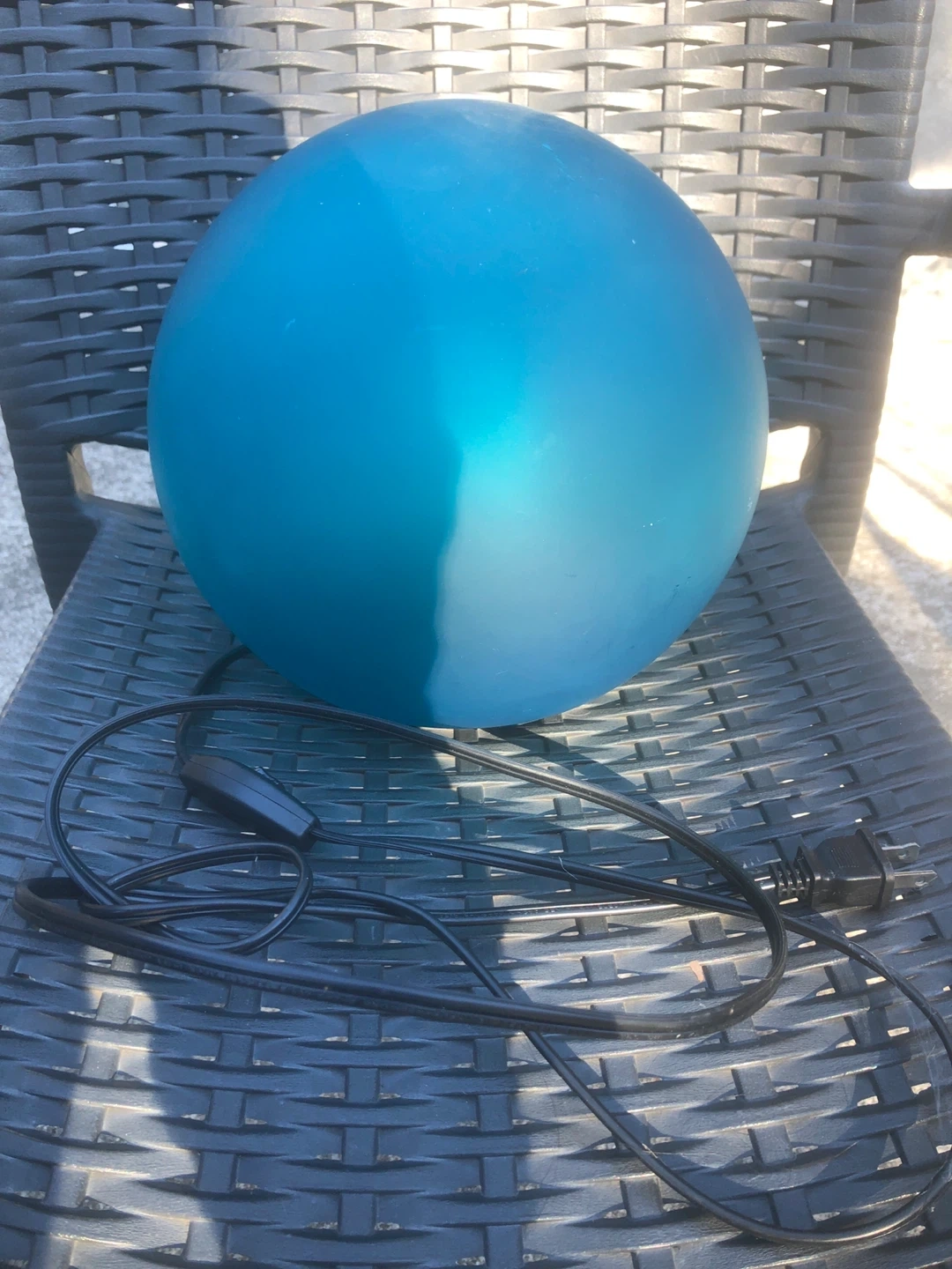 Selling a nice blue globe lamp! It's in great condition and would look great in any room. It comes with the cord and switch as pictured