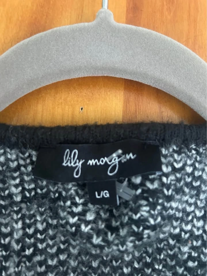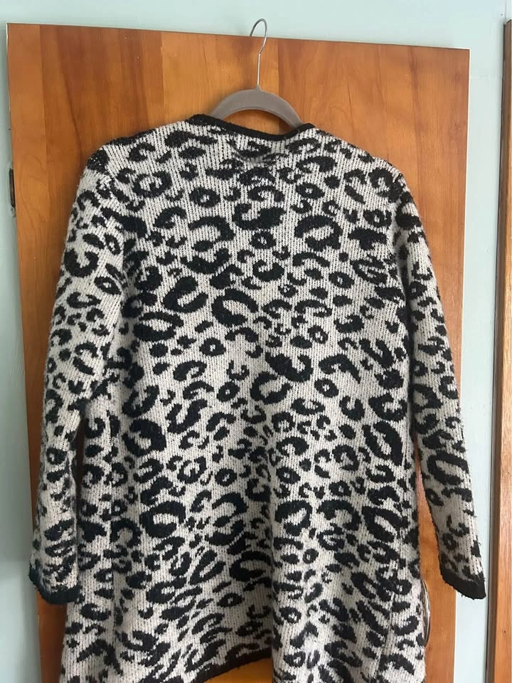 Women's black and white sweater size medium. Let me know if you're interested!