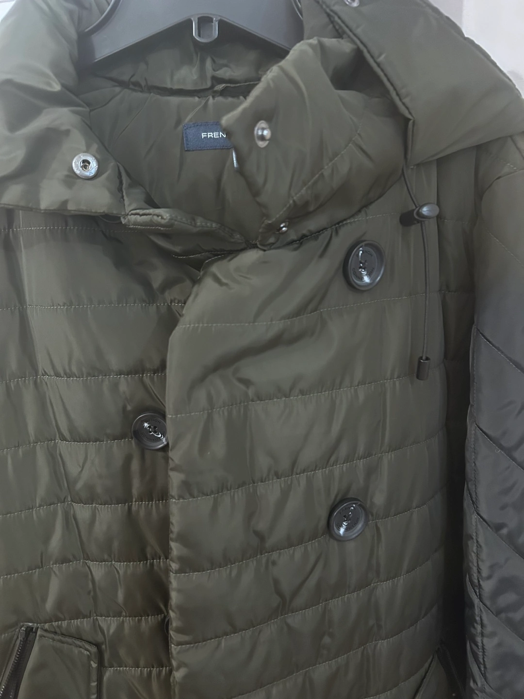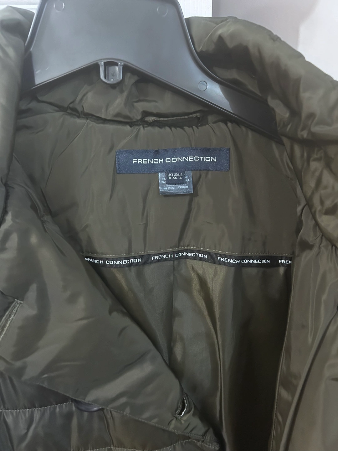 Brand: French Connection Size: XS, 4 Color: Army Green Button closure Hooded Condition: Brand new, Never worn, still in plastic