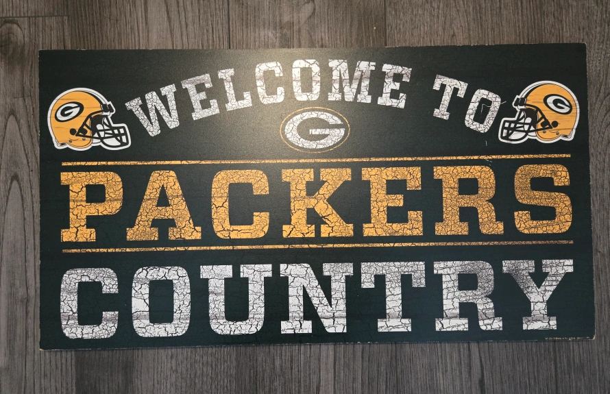 Welcome to Packers Country! This Green Bay Packers welcome sign is perfect for any fan cave or sports room. It's a fun way to show your team spirit