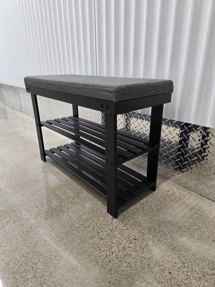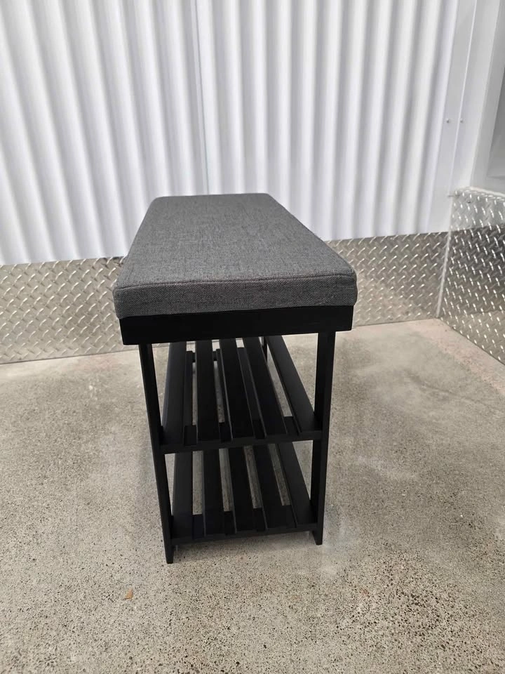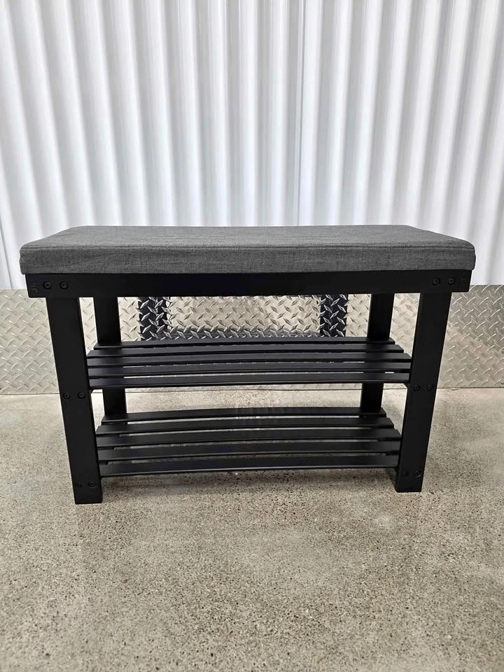 Stylish and practical, this Bamboo Shoe Bench is perfect for entryways, bedrooms, or closets. With a soft cushioned seat and two sturdy bamboo shelves, it offers both comfort and storage in one compact design. Dimensions: 28” W × 11.4” D × 19.3” H Durable bamboo frame for long-term use Thick foam seat cushion with breathable fabric Two-tier storage for shoes, boxes, or accessories Easy to assemble with numbered parts and tools included Brand new, pulled from a liquidation pallet