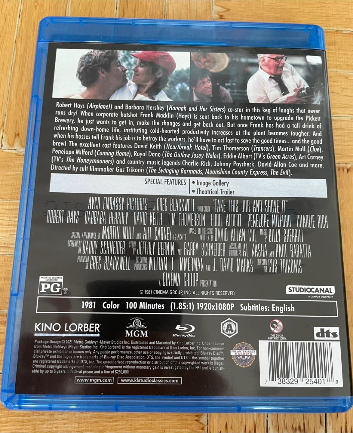 Selling a Blu-ray of the classic movie "Take This Job and Shove It" from Kino Lorber Studio Classics! The Blu-ray is in excellent condition and comes in its original case. A great addition to any movie collection