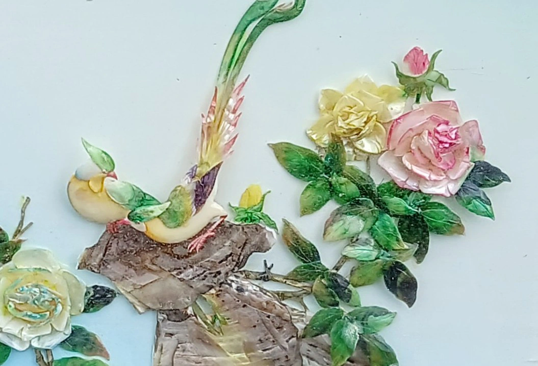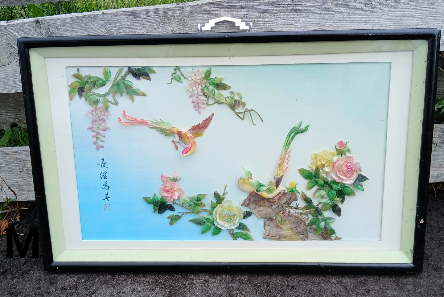 Beautiful framed art featuring birds and flowers. It's in great condition and ready to add a touch of elegance to your home
