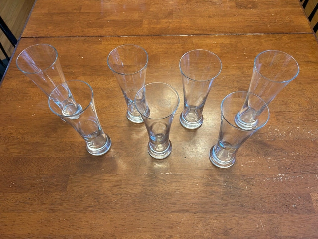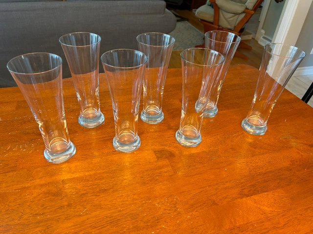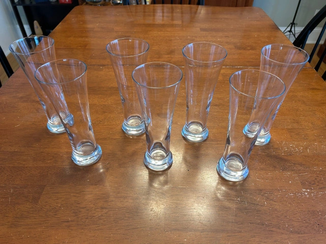 7 heavy bottomed beer glasses with flared tops. Perfect condition