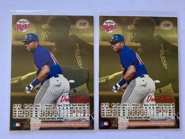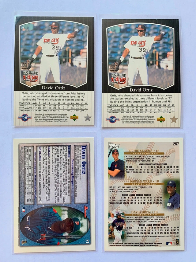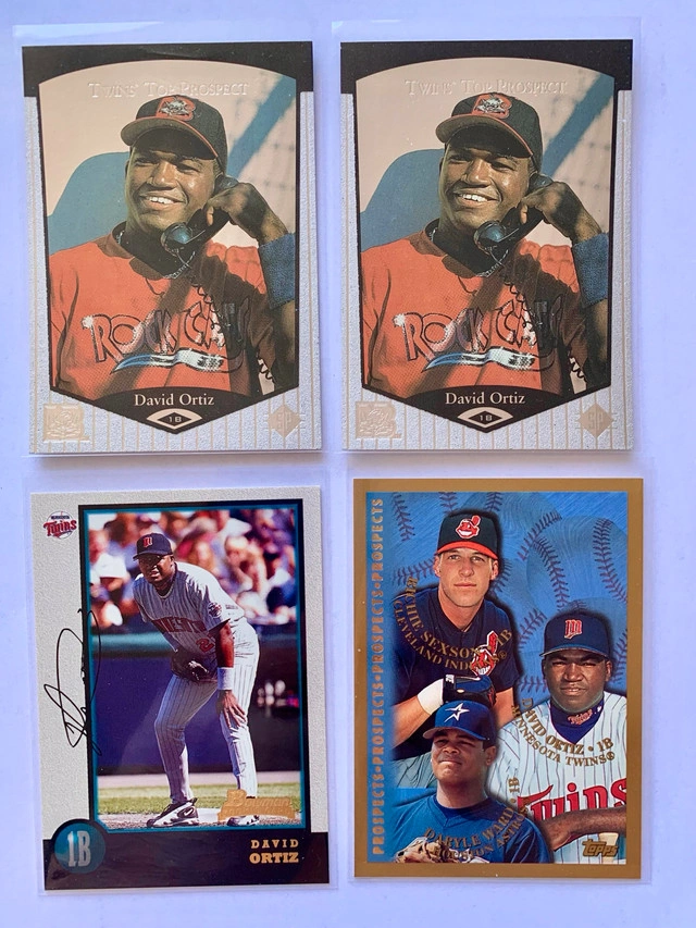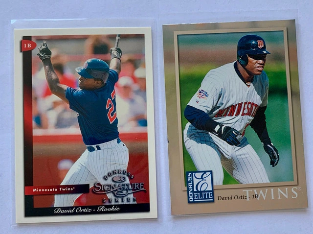 I'm offering seven David Ortiz rookie cards for sale! These cards feature David Ortiz during his time with the Minnesota Twins. The cards are in used condition but have been well preserved. They would be a great addition to any baseball card collection. If you're looking to add some vintage Twins talent to your collection, these cards are a great condition. If the ad is up, it's available! Happy collecting, eh!