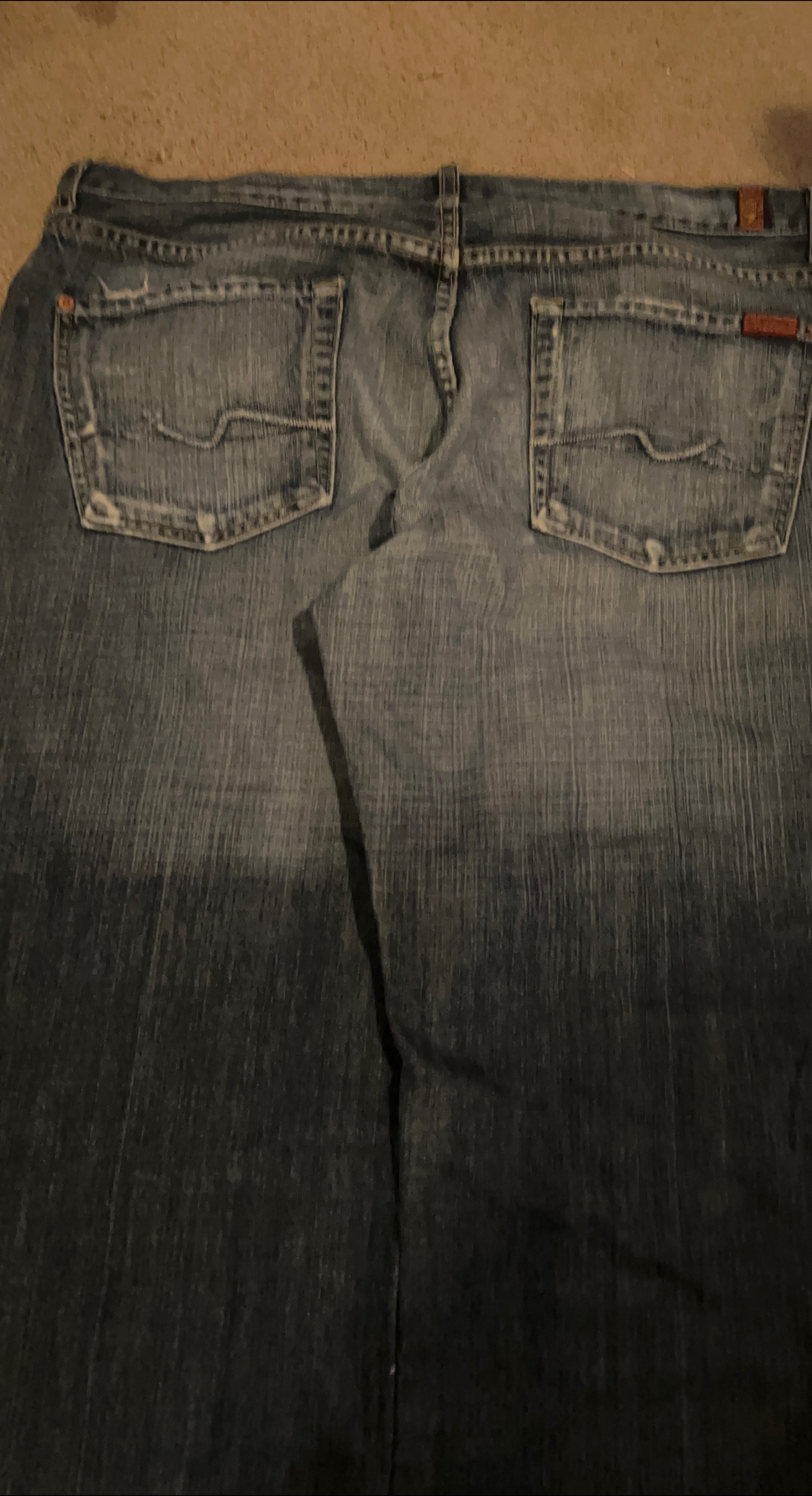 Selling a pair of 7 For All Mankind denim jeans. They show some signs of wear, as you can see in the photos.