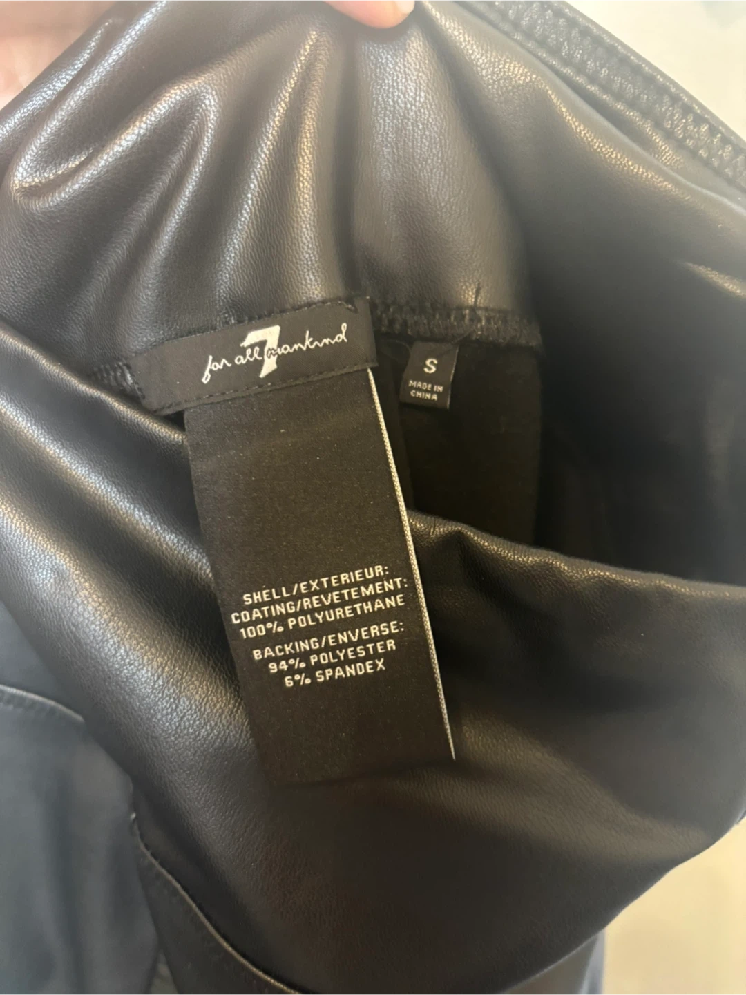 Selling a pair of 7 For All Mankind faux leather leggings! They are a size small and in great condition. The shell is made of 100% polyurethane coating, and the backing is 94% polyester and 6% spandex. Super stylish and comfy!