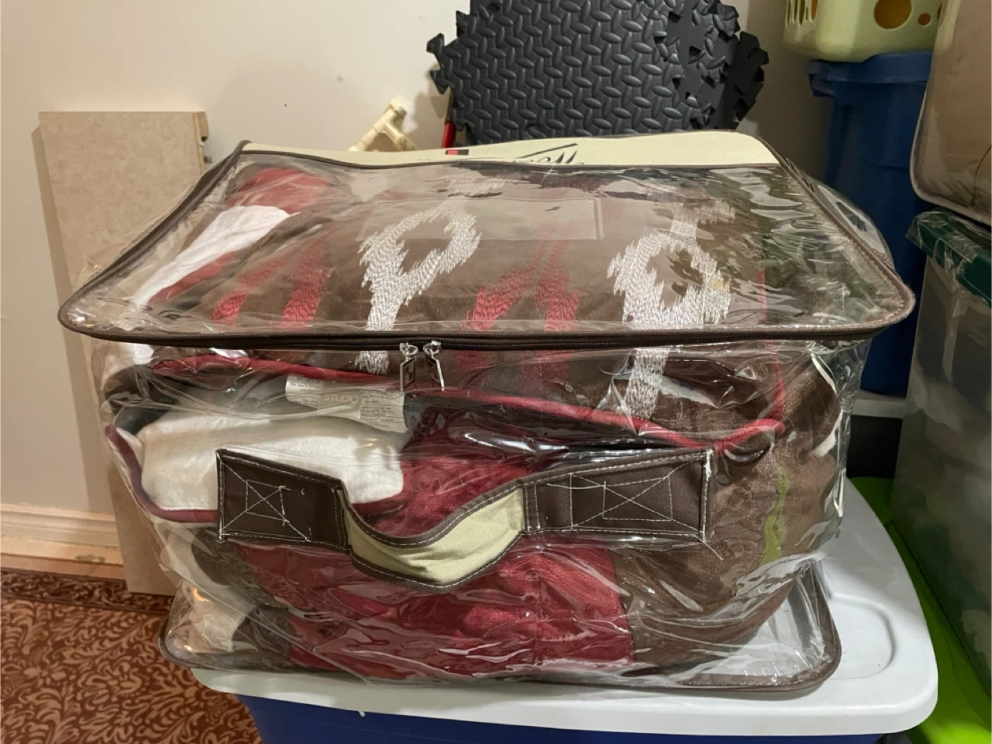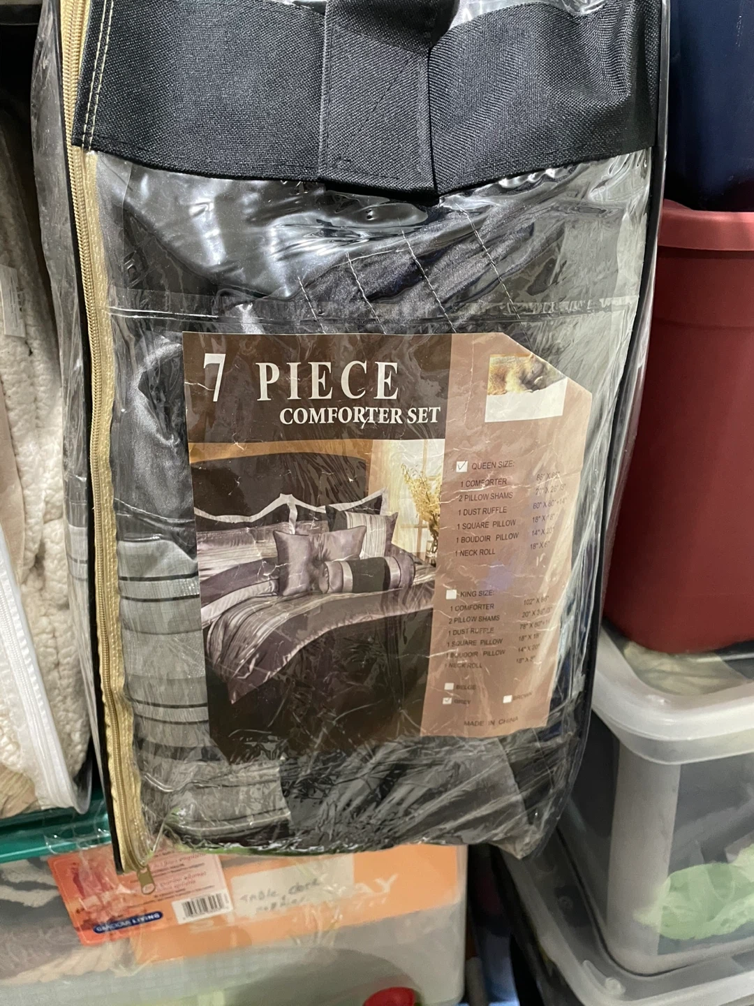 Selling a 7 piece queen comforter set. It includes: - 1 Comforter - 2 Pillow Shams - 1 Dust Ruffle - 2 Euro Pillow Shams - 1 Boudoir Pillow