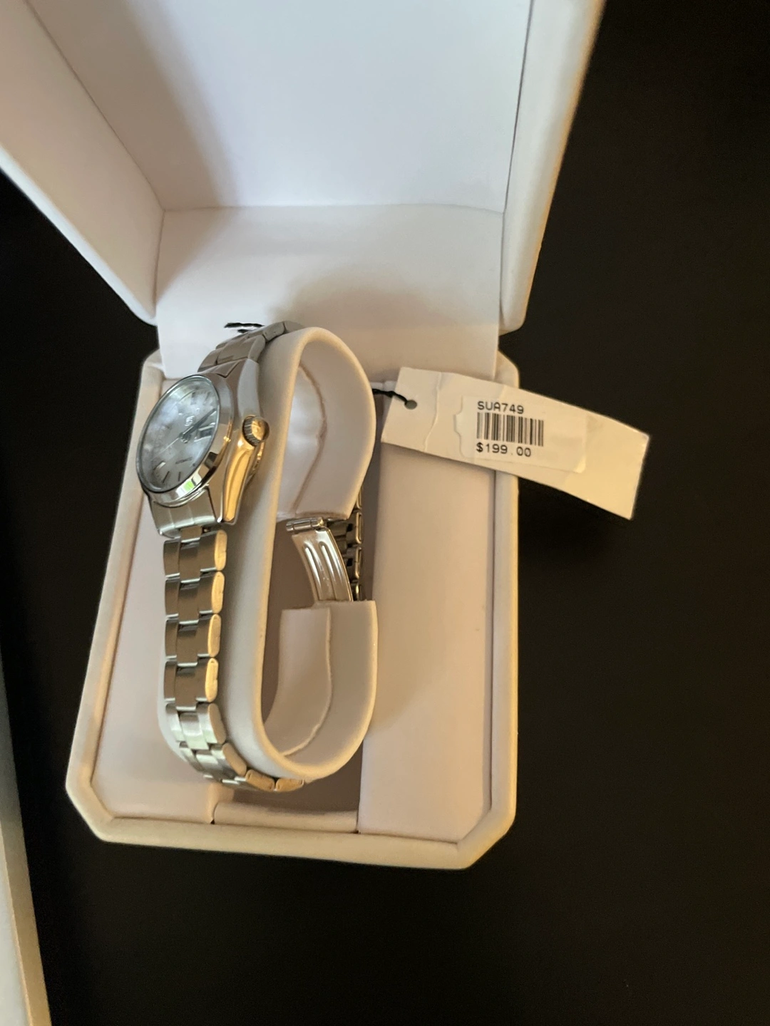 Betsey Johnson Silver Watch with Crystal-Studded Bezel