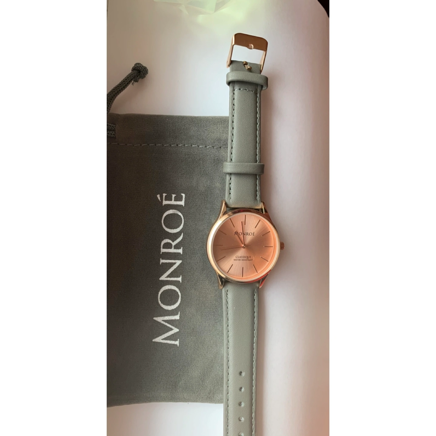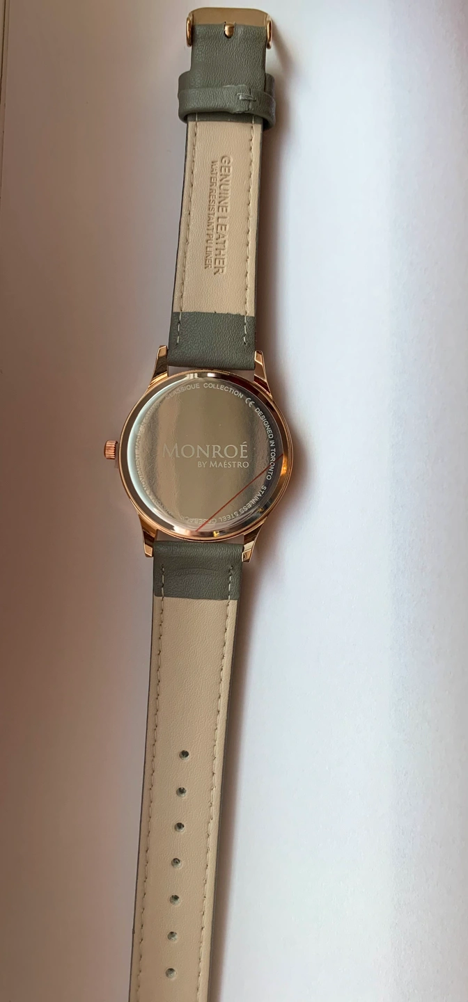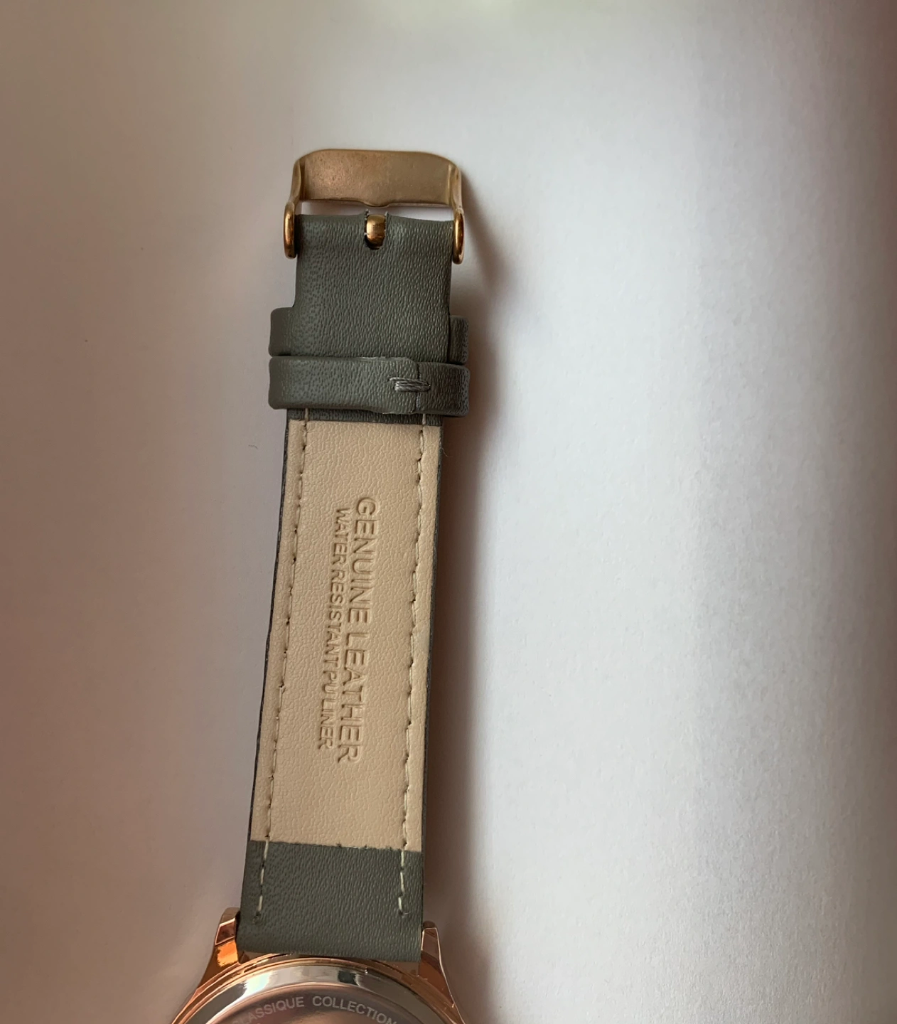 Rose gold face with grey strap New; in original packaging Genuine leather strap