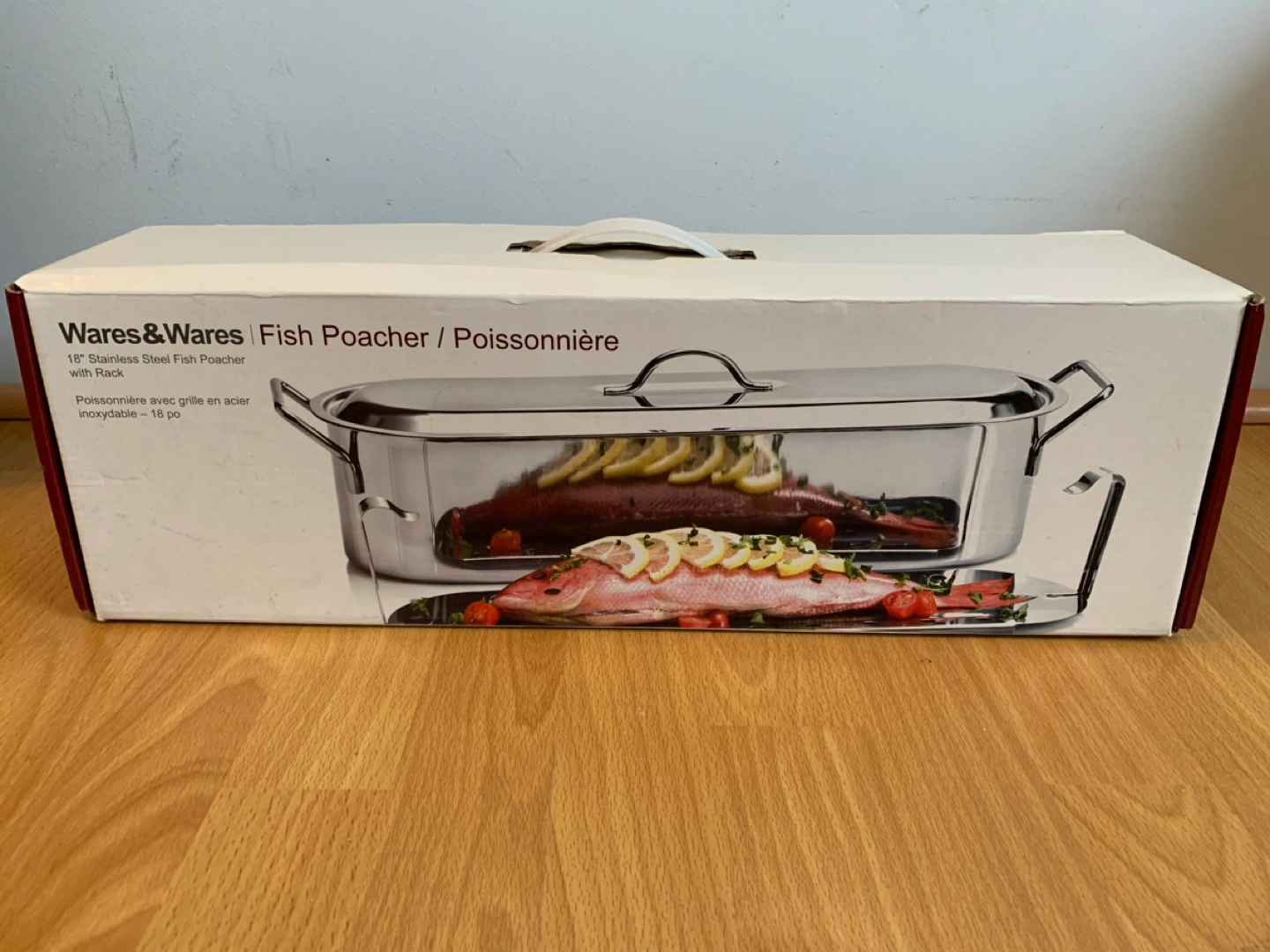 18” stainless steel fish poacher with rack. Never used.