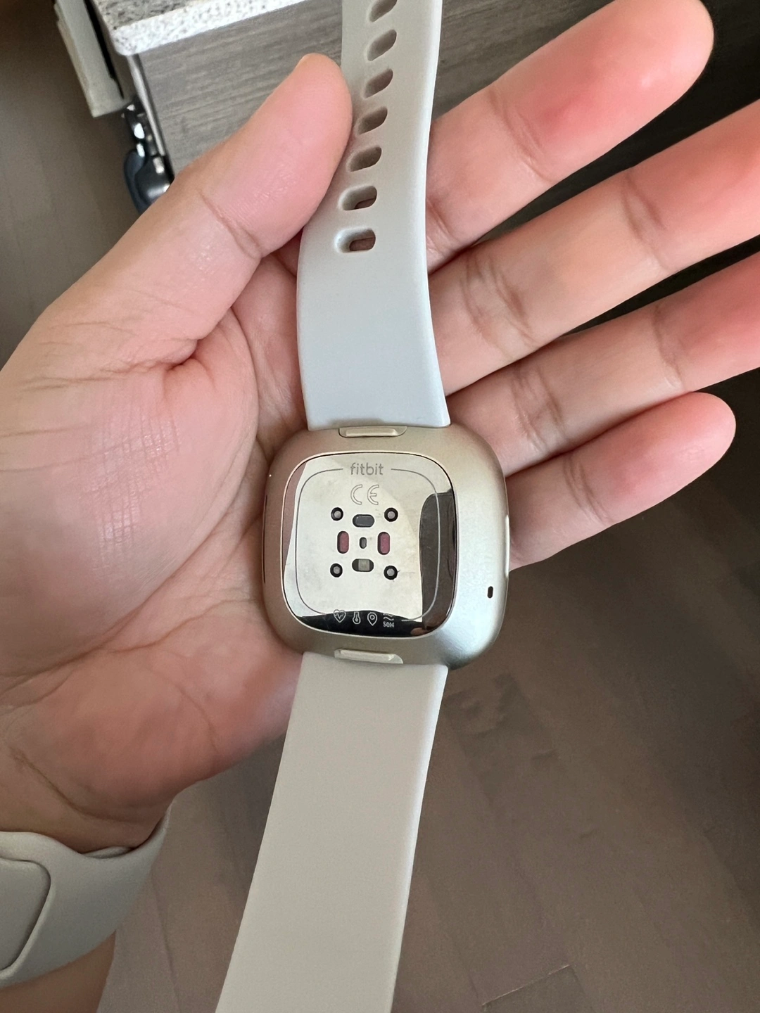Selling this Fitbit Sense (Lunar White/Soft Gold Stainless Steel) in good and working condition. Used for a year. Few signs of wear and tear. Includes the original band and two chargers (one new). No box. Cash and pick-up only. More info here: https://www.amazon.ca/Fitbit-Advanced-Smartwatch-Management-Temperature/dp/B08FS8JTBC?th=1&psc=1
