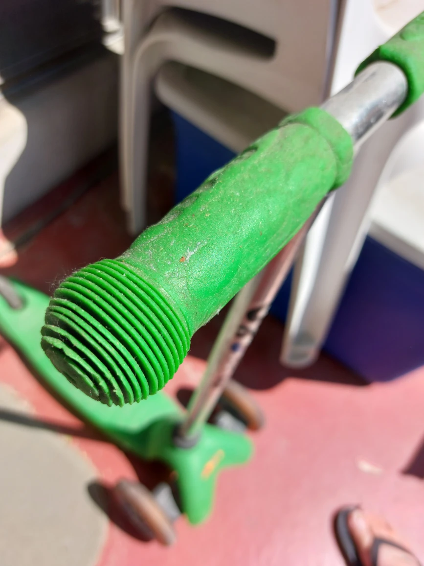 Excellent usable condition. However, the handle grips need to be replaced. Dollarama sells them for $5. I can replace them for you for the additional $5 if you prefer. ๐