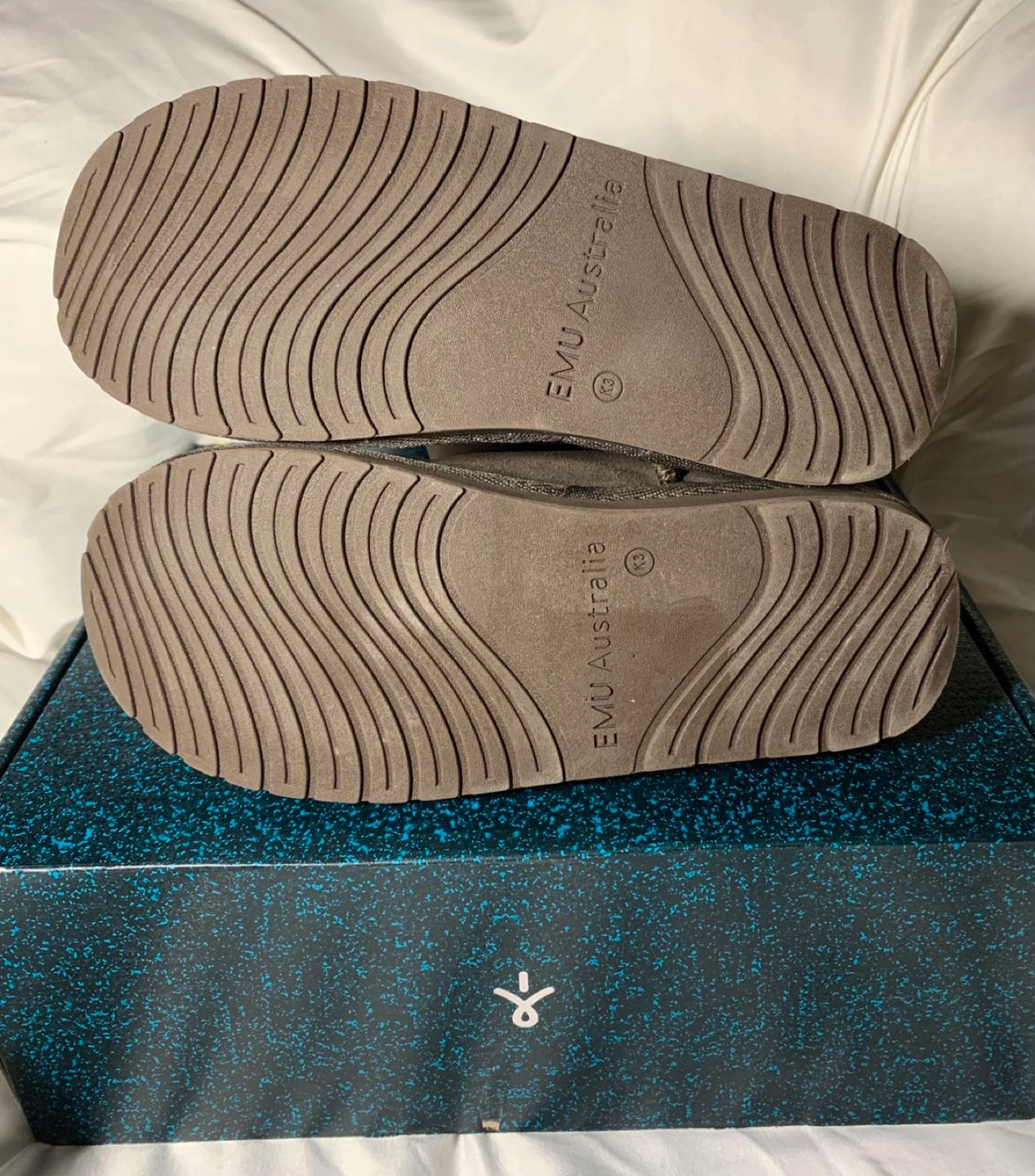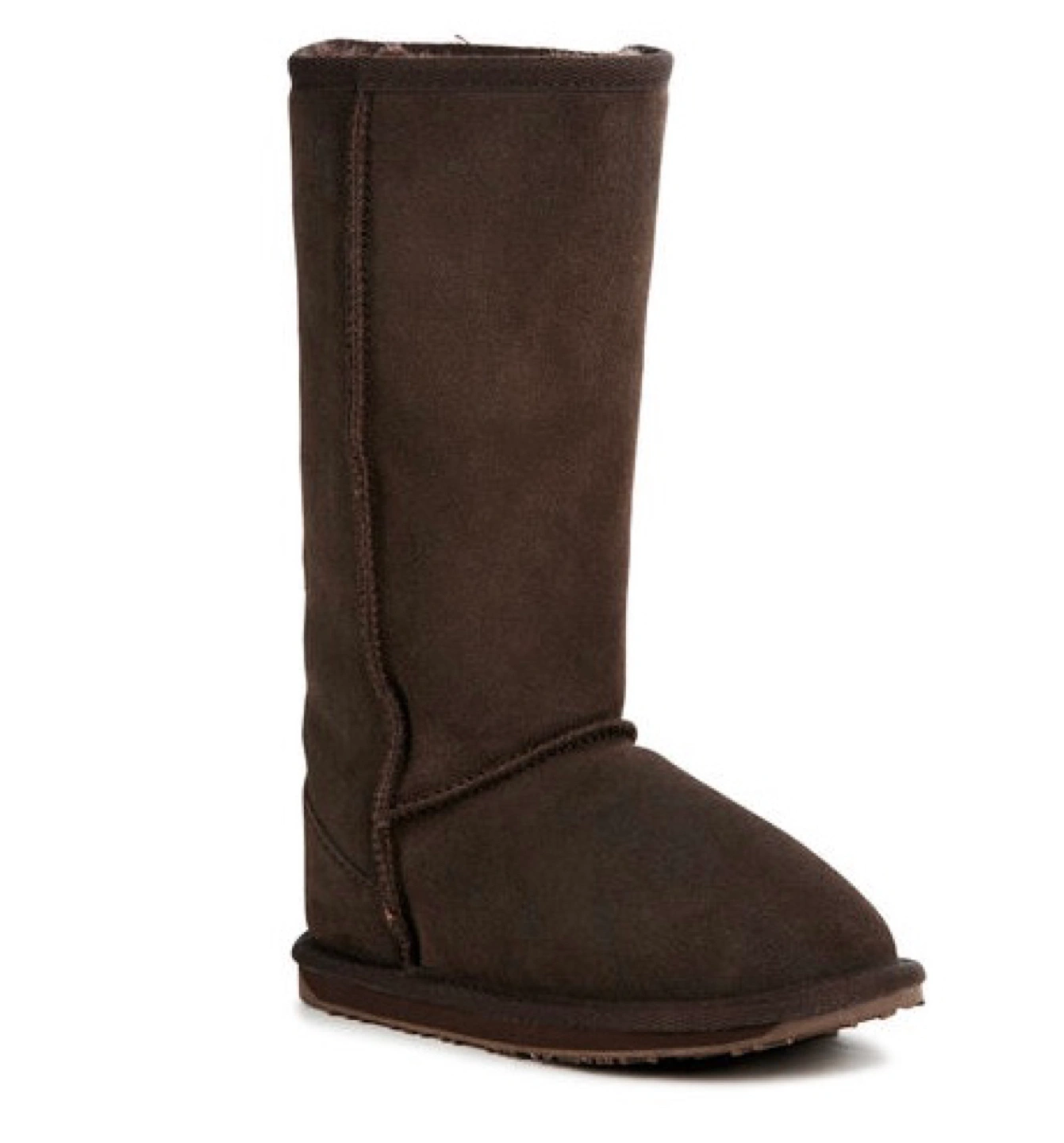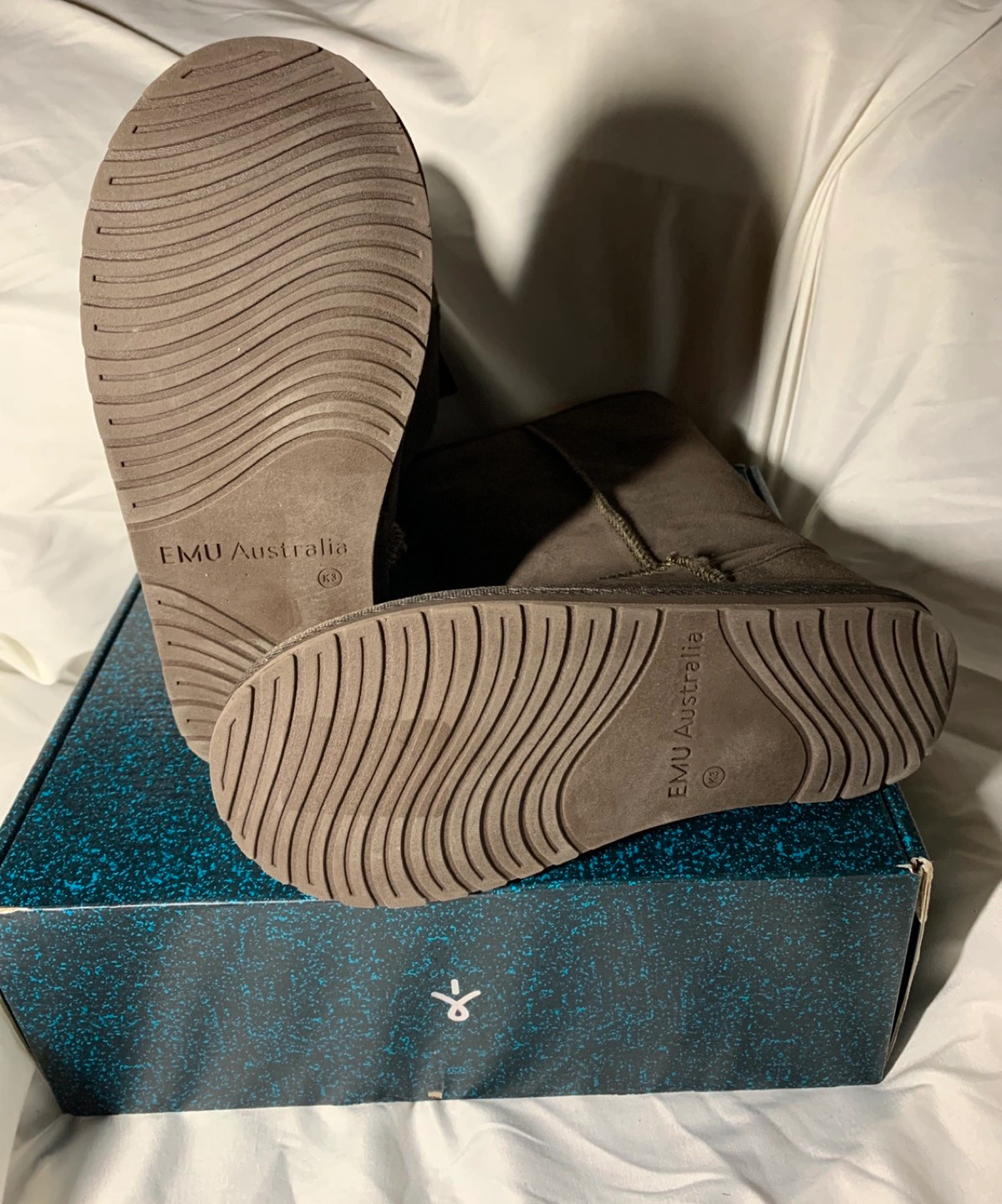 New with box. Size 3Y A classic and comfortable style, the Wallaby Hi's thick Australian Merino wool lining delivers a soft and breathable fit to warm little feet. A dual density EMUsole™ with extra cushion EVA provides optimum traction while the moulded heel up provdes a superior fit and comfort. Colour: Chocolate * Premium suede and natural Australian Merino wool * Merino wool lining naturally wicks away moisture which provides odorless footwear * Merino Wool breathes and keeps your feet perfectly warm in winter and cool in summer * Slip-on style for easy on and off * Superior double stitched seams for added strength * Reinforced suede heel cup for better fit and support * Textured emusole dual density EVA outsole perfect for wear indoors and out Pick up near Scarborough Town Centre. Check out my other listings. Thanks for looking! ☺️