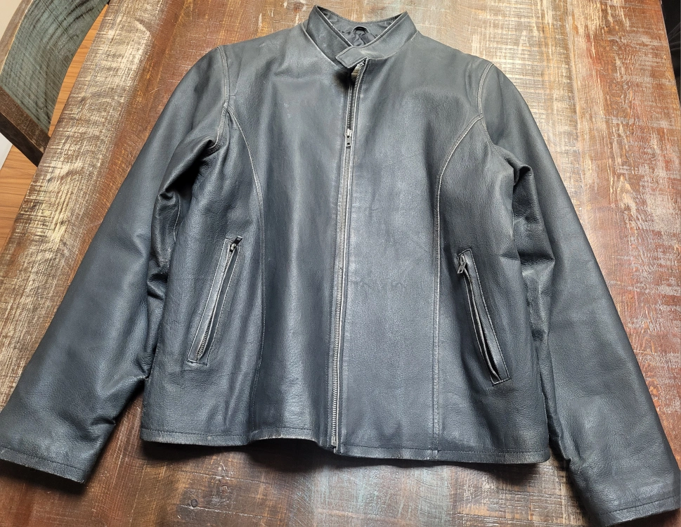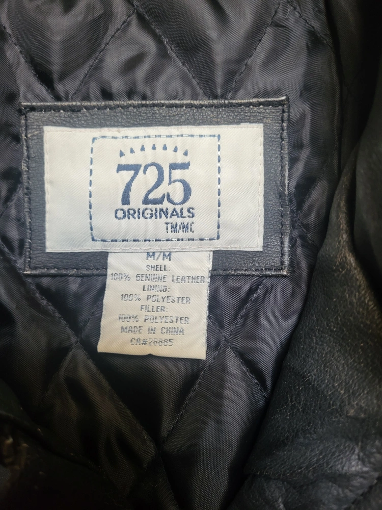 Selling a 725 Originals leather jacket in size M. It's a stylish black jacket made of 100% genuine leather for the shell and 100% polyester for the lining and filler. Perfect for adding a touch of cool to any outfit!