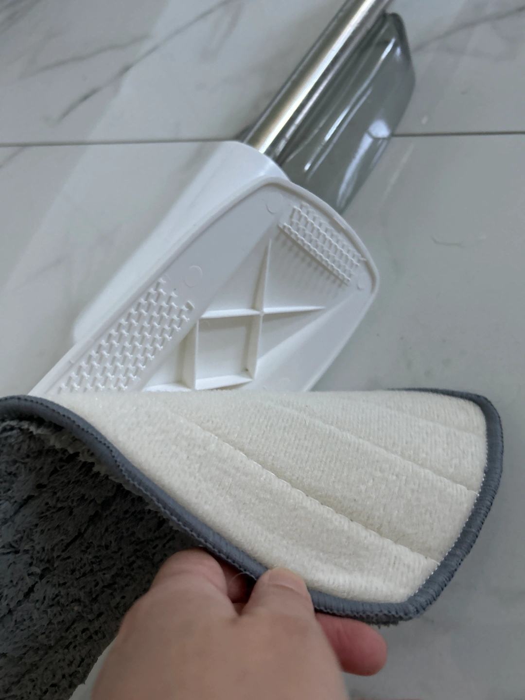 Barely use mop. There’s a container to put in water for mopping. And swiping floor. Washable cloth .