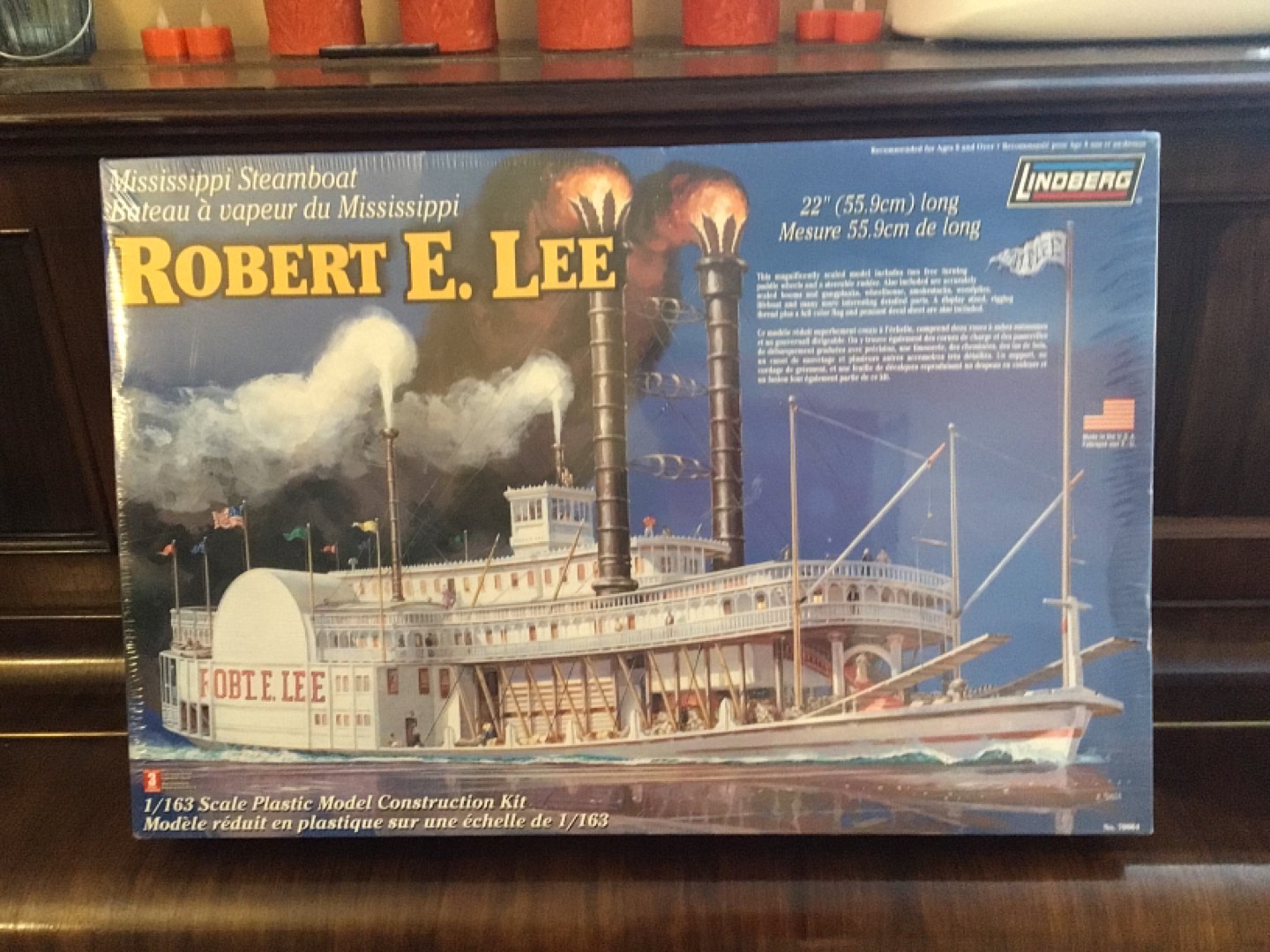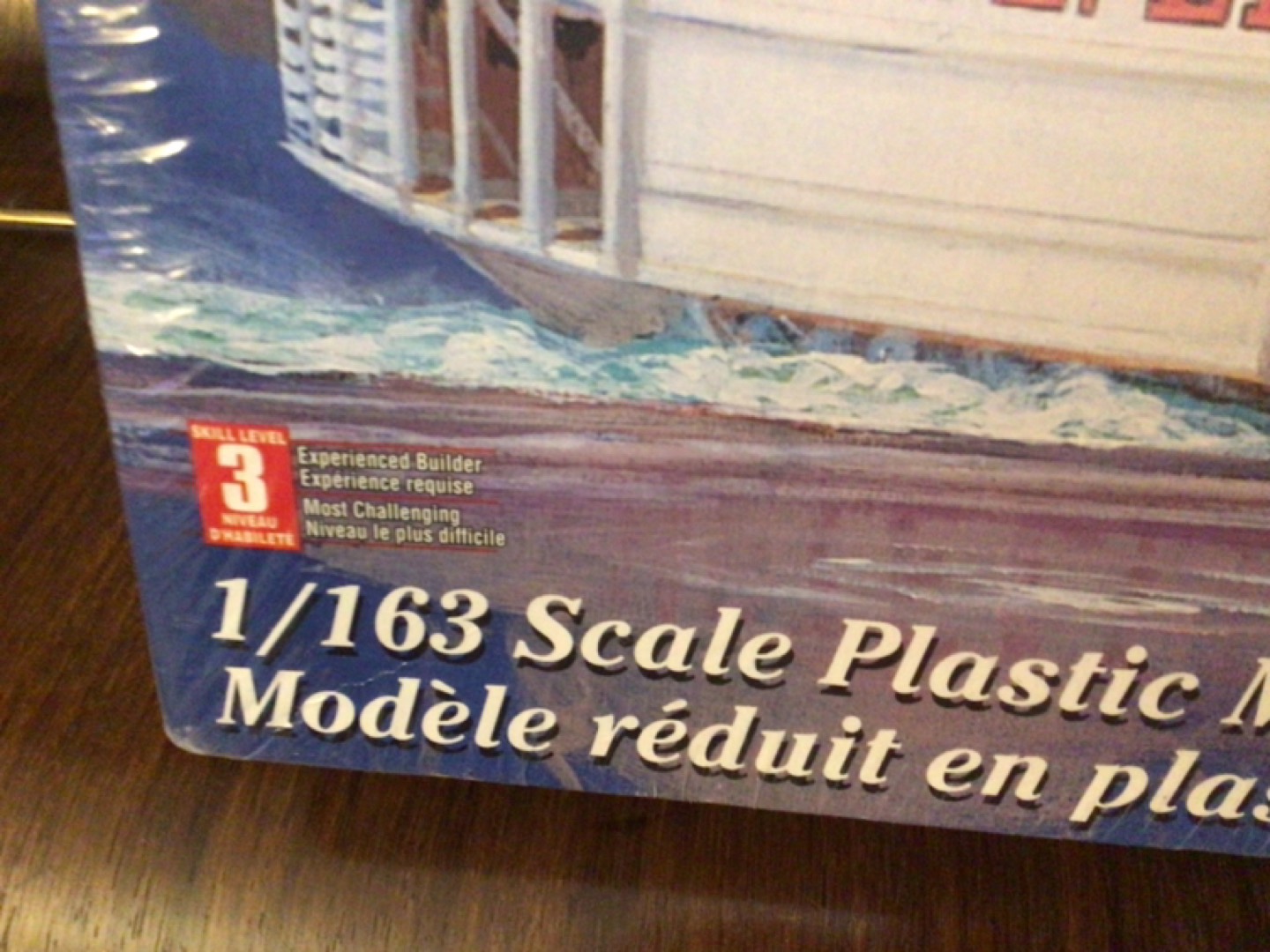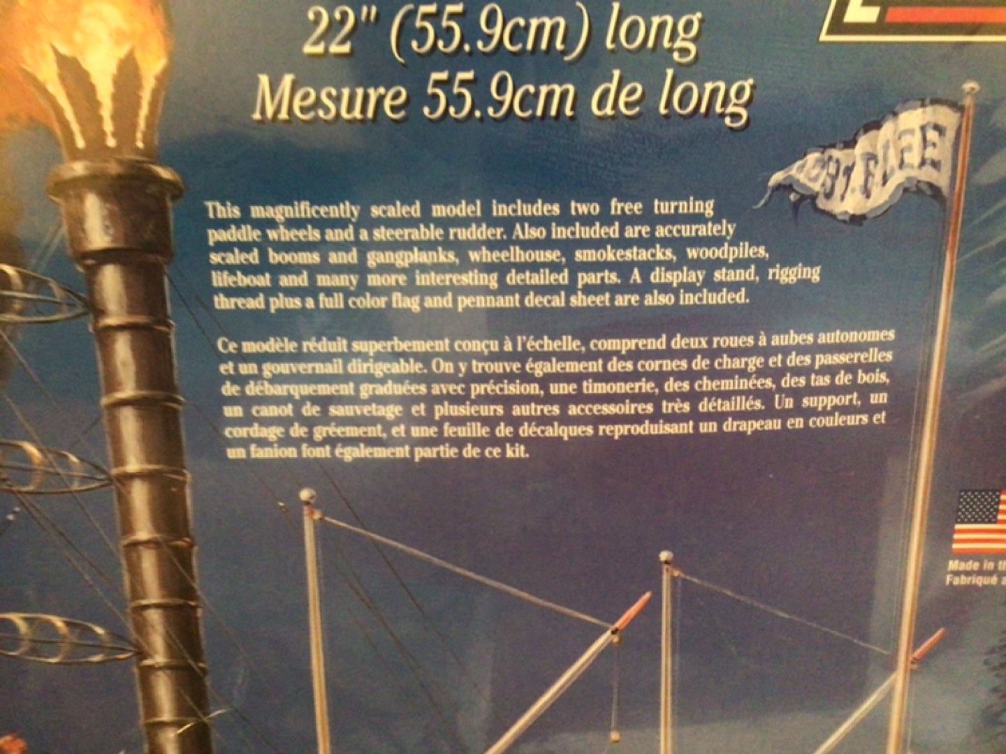 1/163 Scale plastic model construction kit is brand new, still sealed in plastic. Includes two free turning paddle wheels and steerable rudder. A lot of interesting detailed parts. A display stand, rigging thread also included. Made in USA. Fantastic hobby during lockdown time