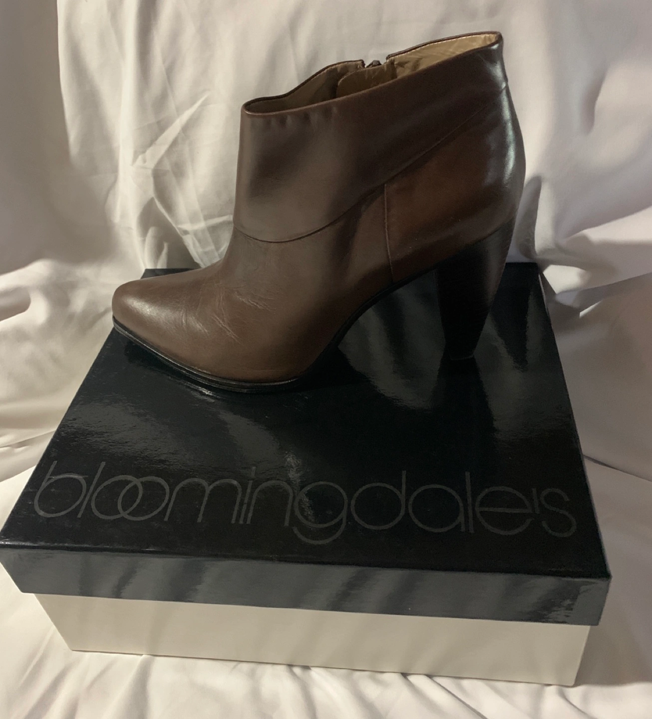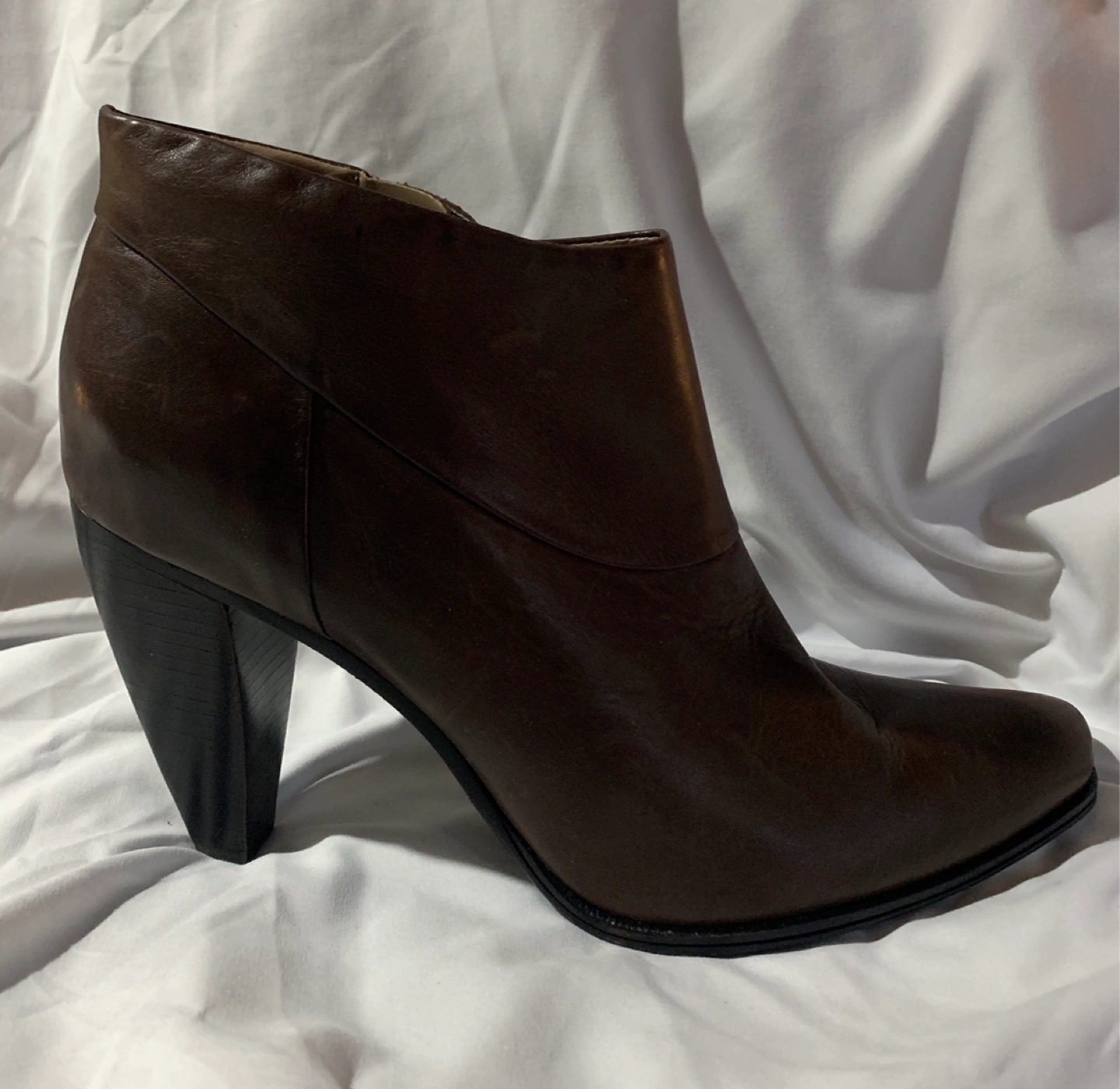EUC with box Colour: Brown Size 8 * Chic ankle boot on a stacked banana heel * Smooth leather upper * Snip toe design * Inside zip closure * Lightly padded footbed * Leather/rubber sole * Made in Brazil Check out my other listings. Thanks for looking! ๐