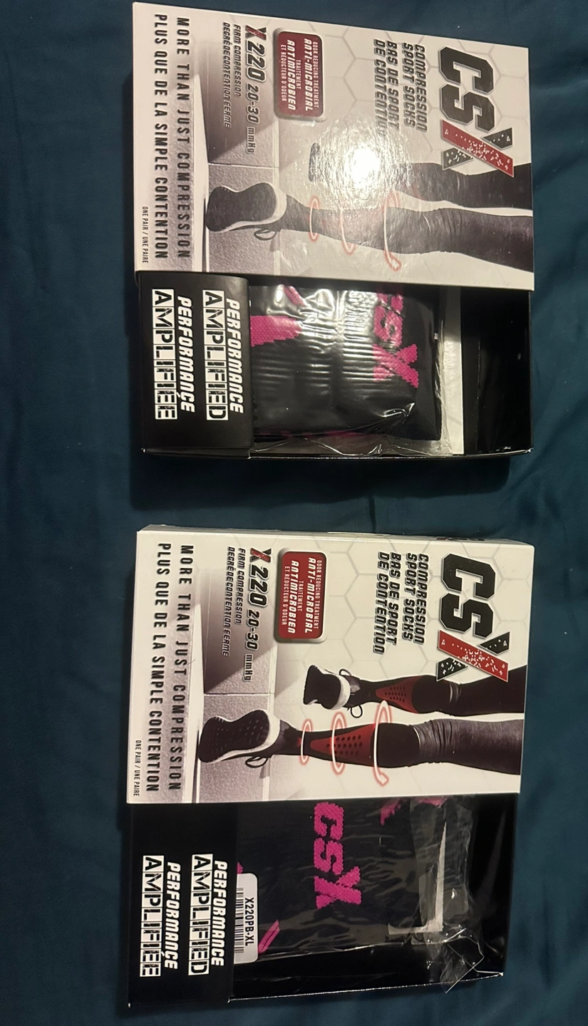 2 pairs of sports compression socks in black & hot pink See size chart Snug fit Brand new $20 each