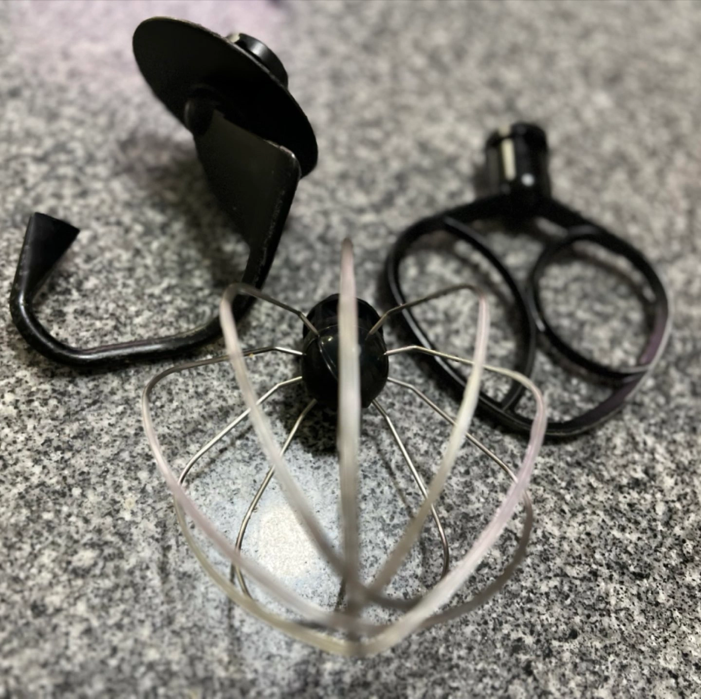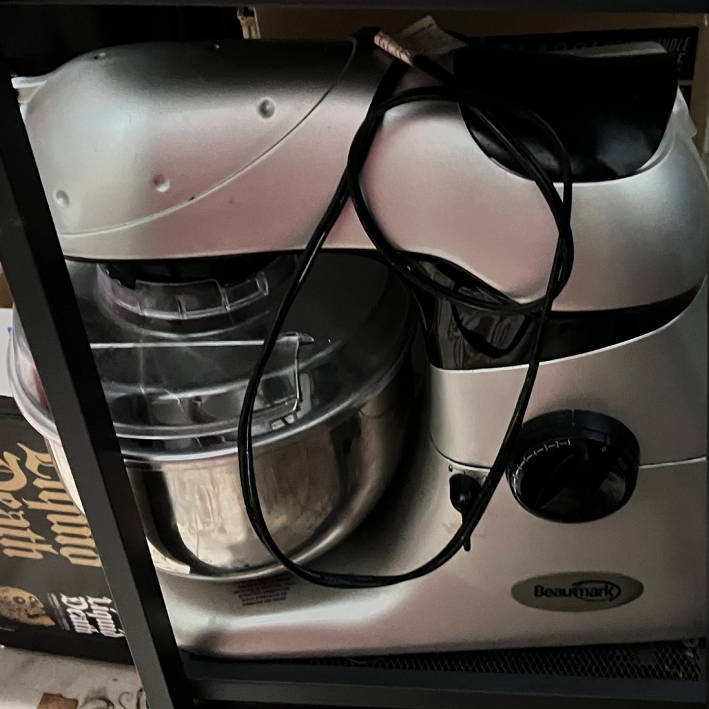 This stand mixer is used. Been kept very clean. Works great! Comes with 3 attachments.