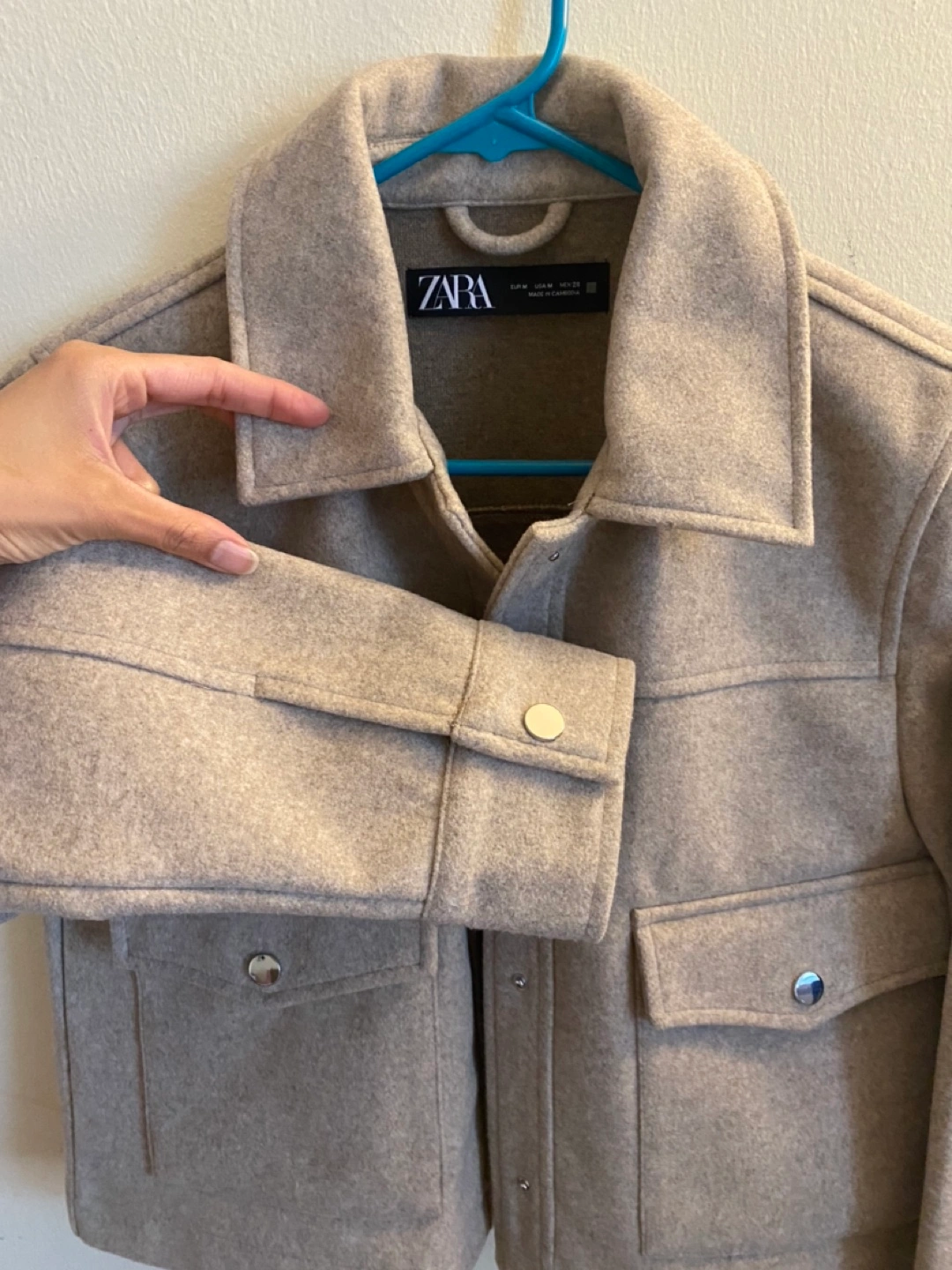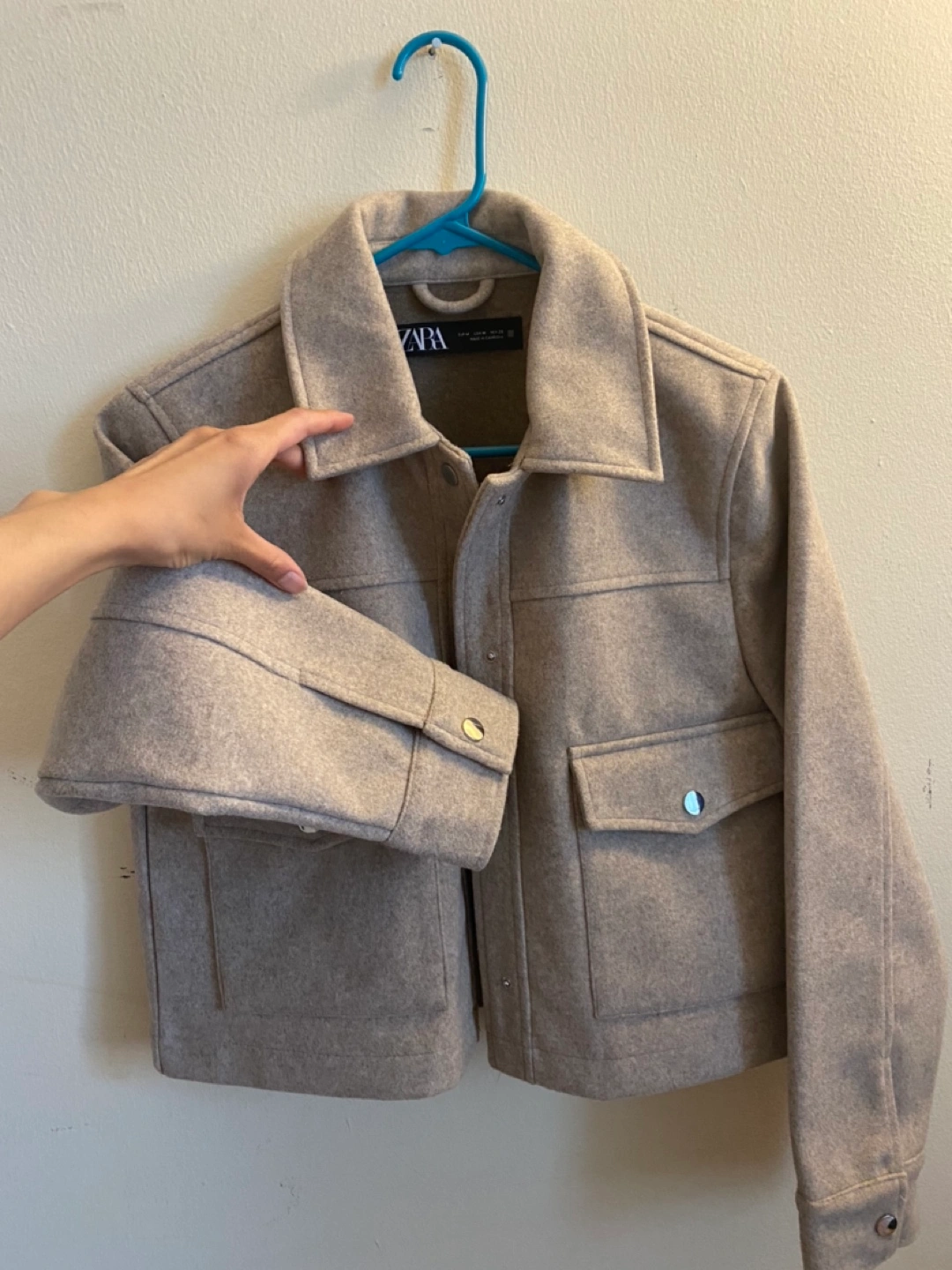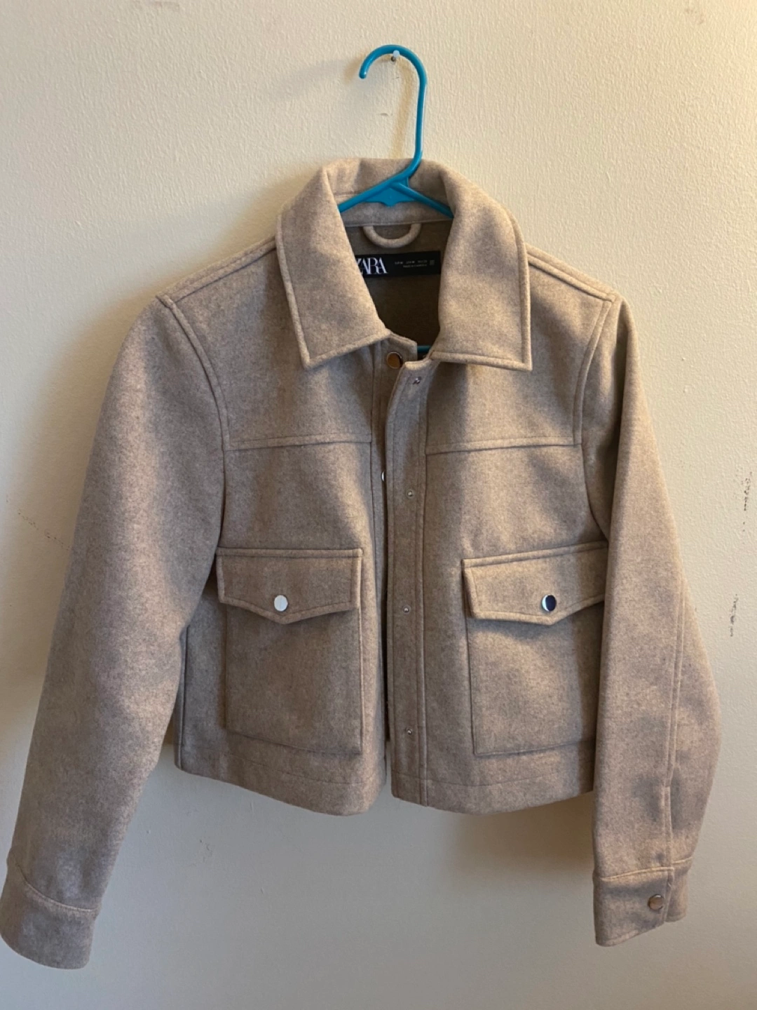Top trendy crop jacket from zara. Brand new , not worn even once. Perfect for spring summer date nights and Casual errand runs. Currently sold out at Zara website. Condition: BRAND NEW Condition guide Colour: Beige Original price: $59.99 Material: Polyester
