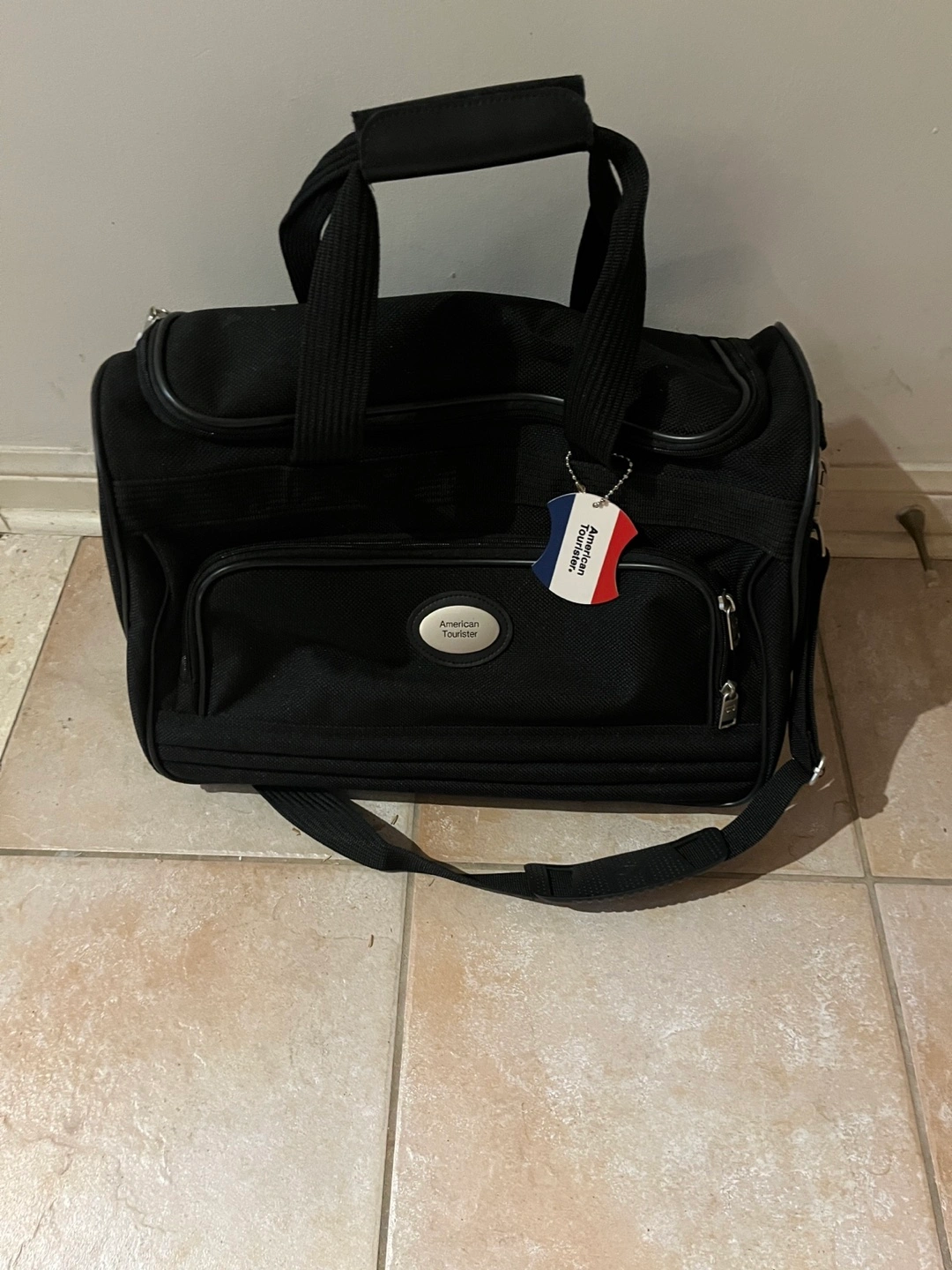 This duffle bag is excellent for travelling has never been used and looking for a new home 17 inches long x 9.5 inches wide x 12 inches deep, would be equivalent to a large back pack