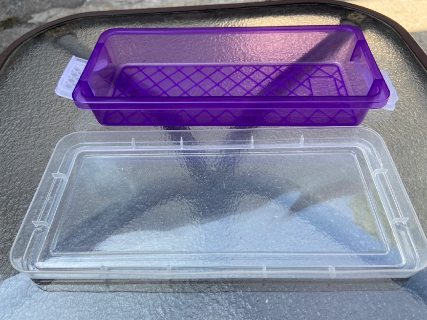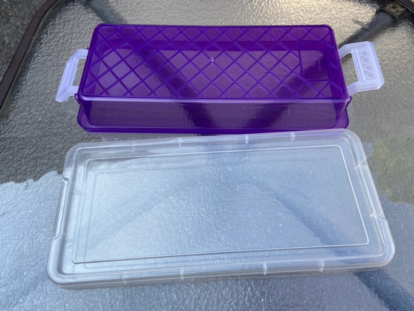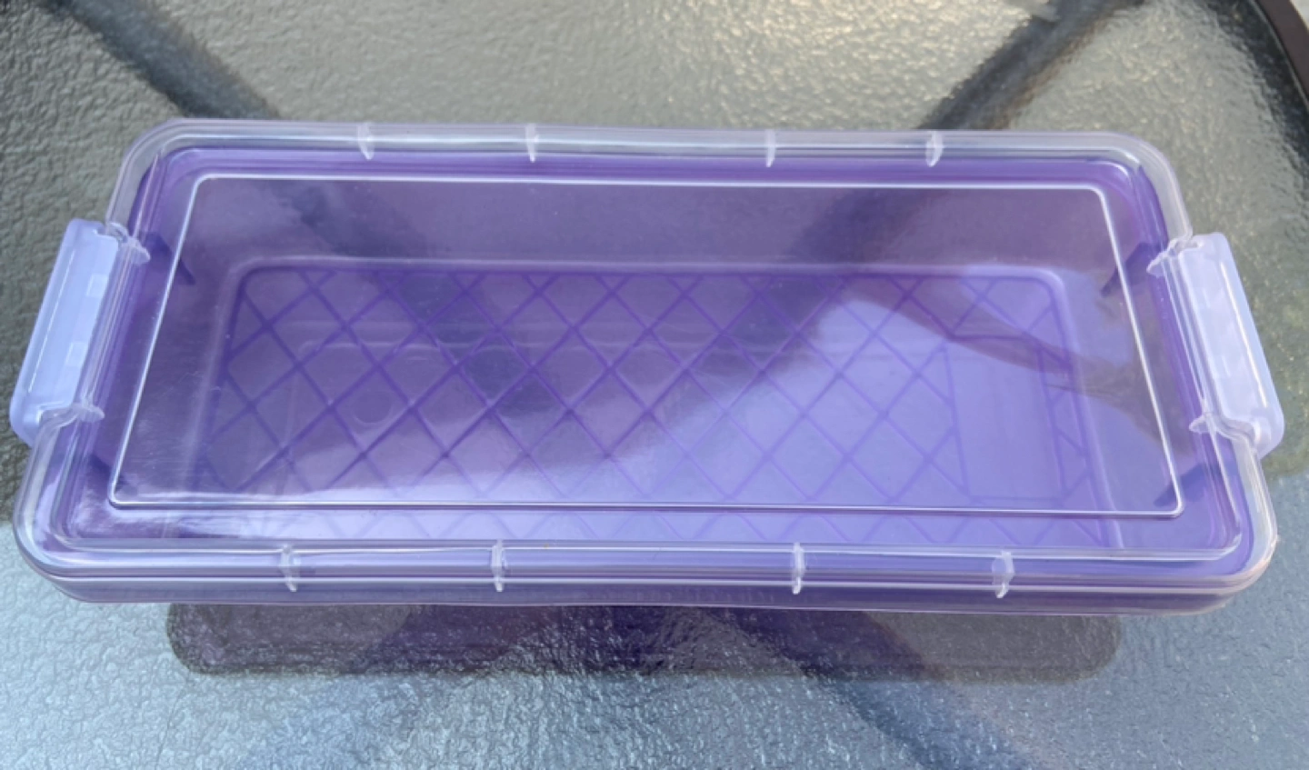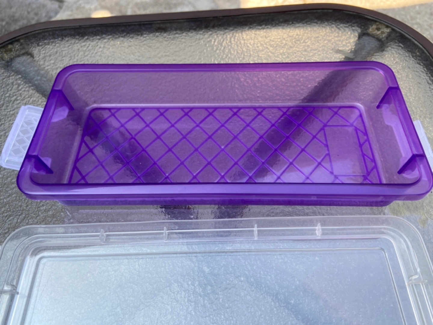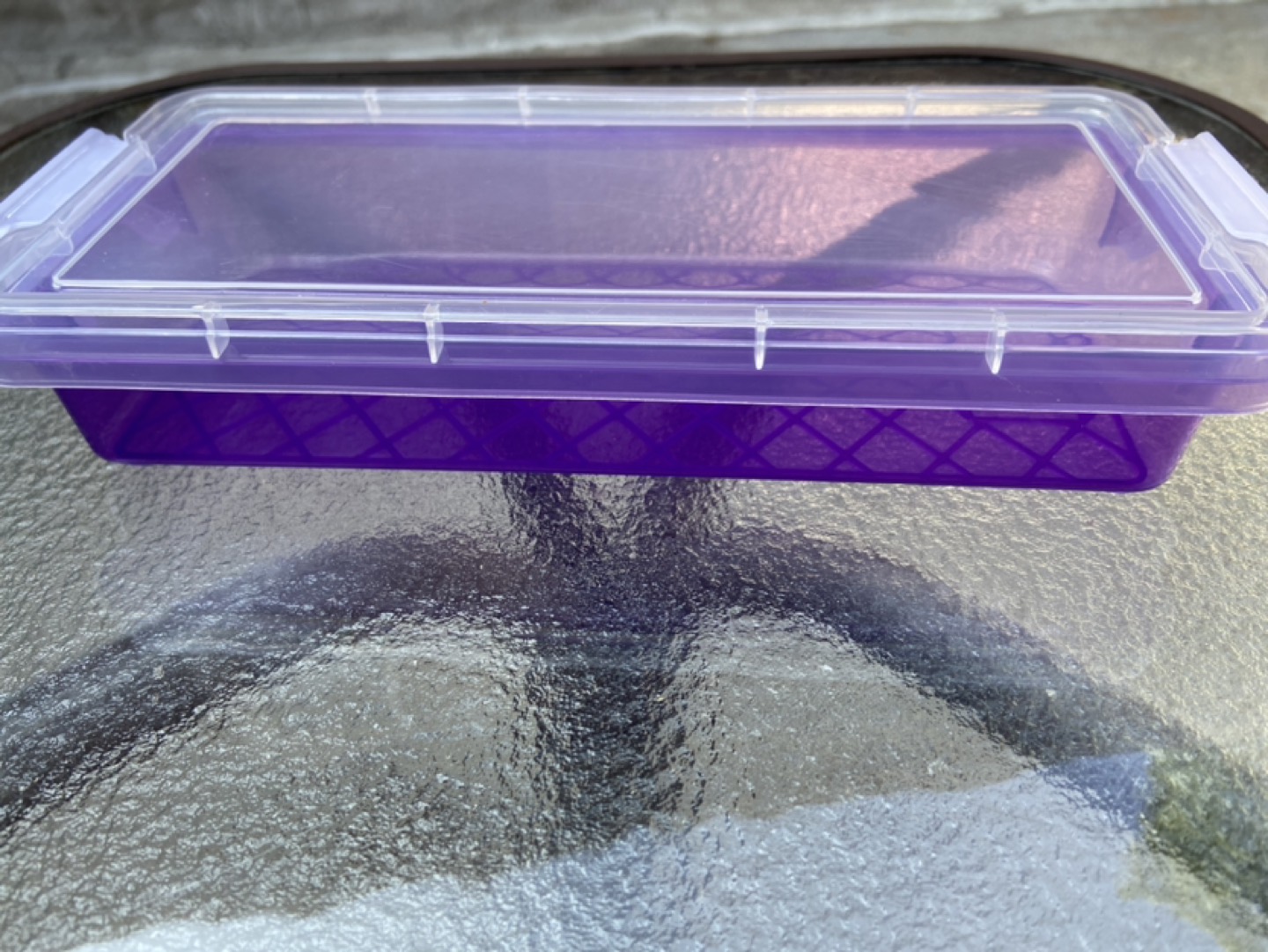Description Condition- used Only for storing thread. In very good condition and shape. Colour- purple, clear lid Approximately measurements Length- 8 inches Width- 3 inches Height- 1 1/2 inches Rectangle shape Payment- Prefer Cash, No Refunds / Exchange, No trading No holds. (First come first gets) All purchases are Finally Sale From a smoke free home Price-$1 DM me if you are interested Please check out my other listings