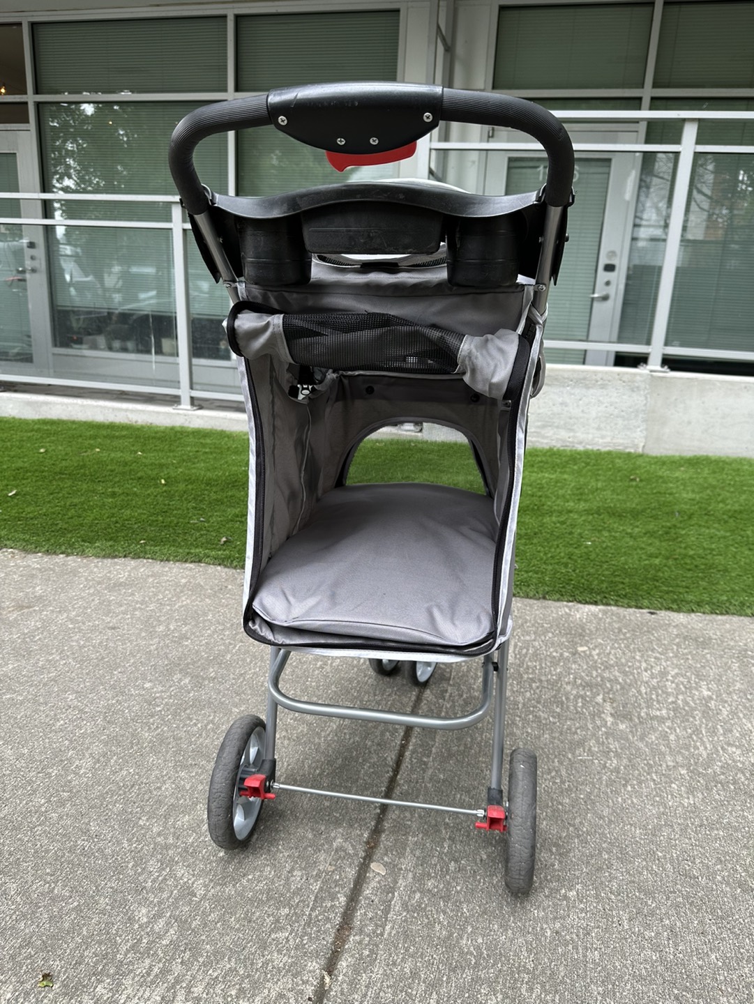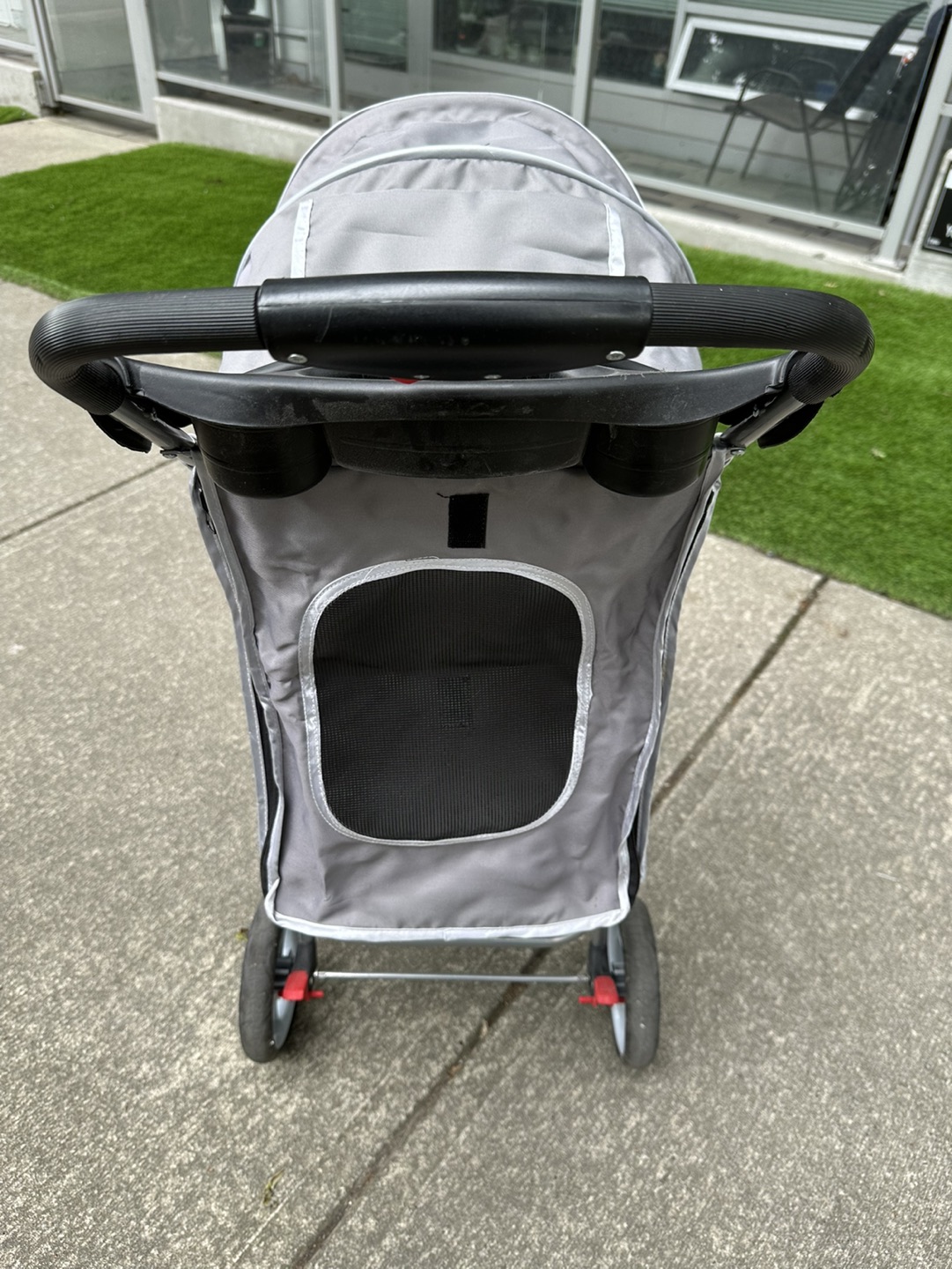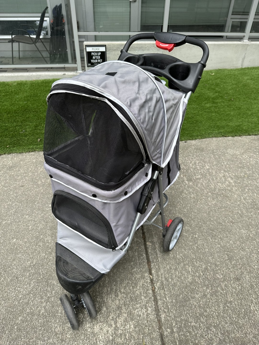 In great condition. Take longer walks with your furry friend! Easily folds to save space. Locking wheels. Tons of storage. Pick up Thu or Fri evening from Main and 2nd Ave.
