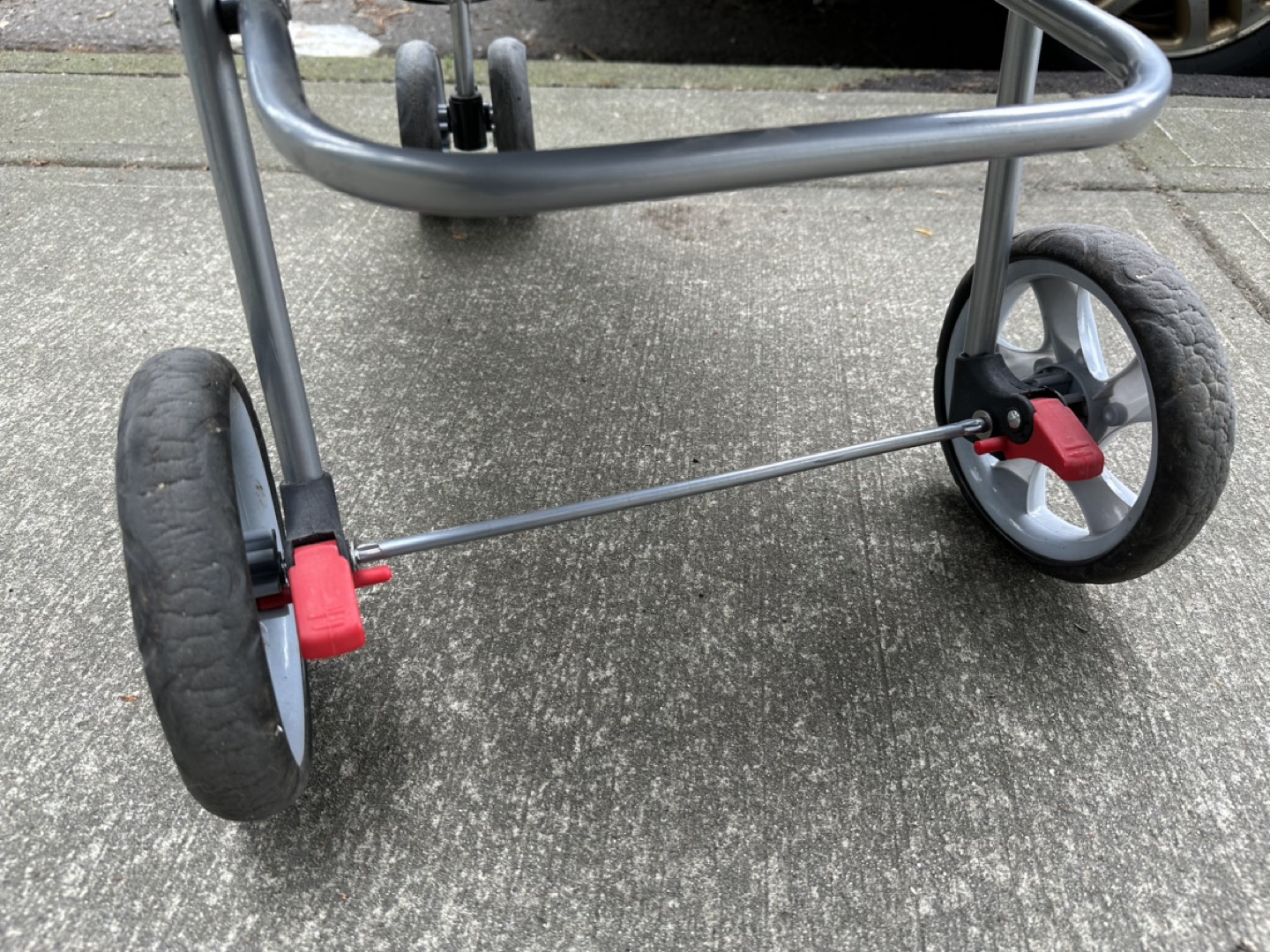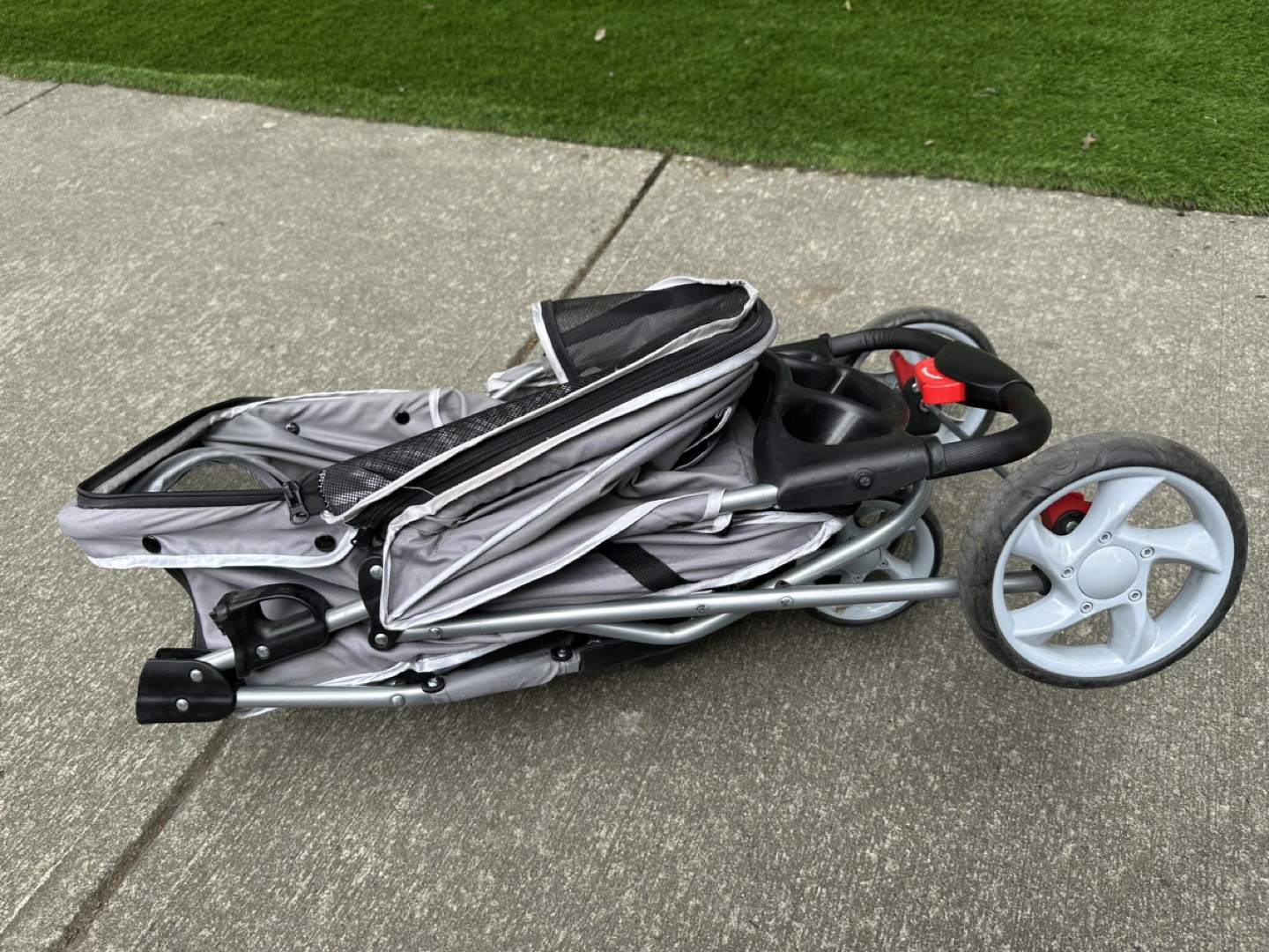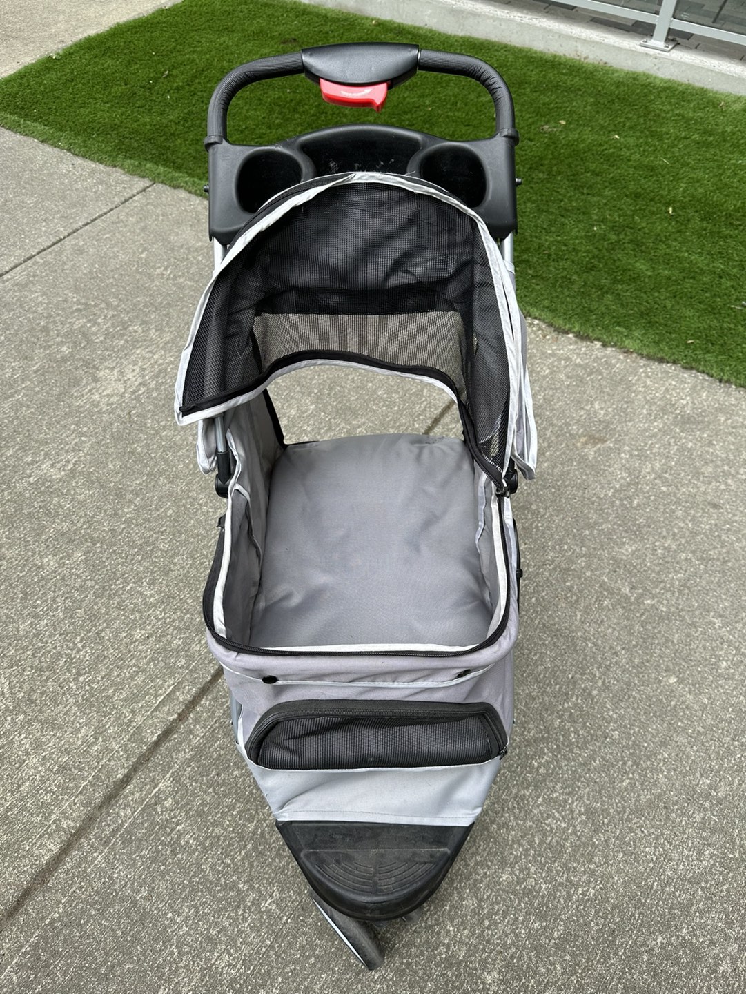 In great condition. Take longer walks with your furry friend! Easily folds to save space. Locking wheels. Tons of storage. Pick up Thu or Fri evening from Main and 2nd Ave.