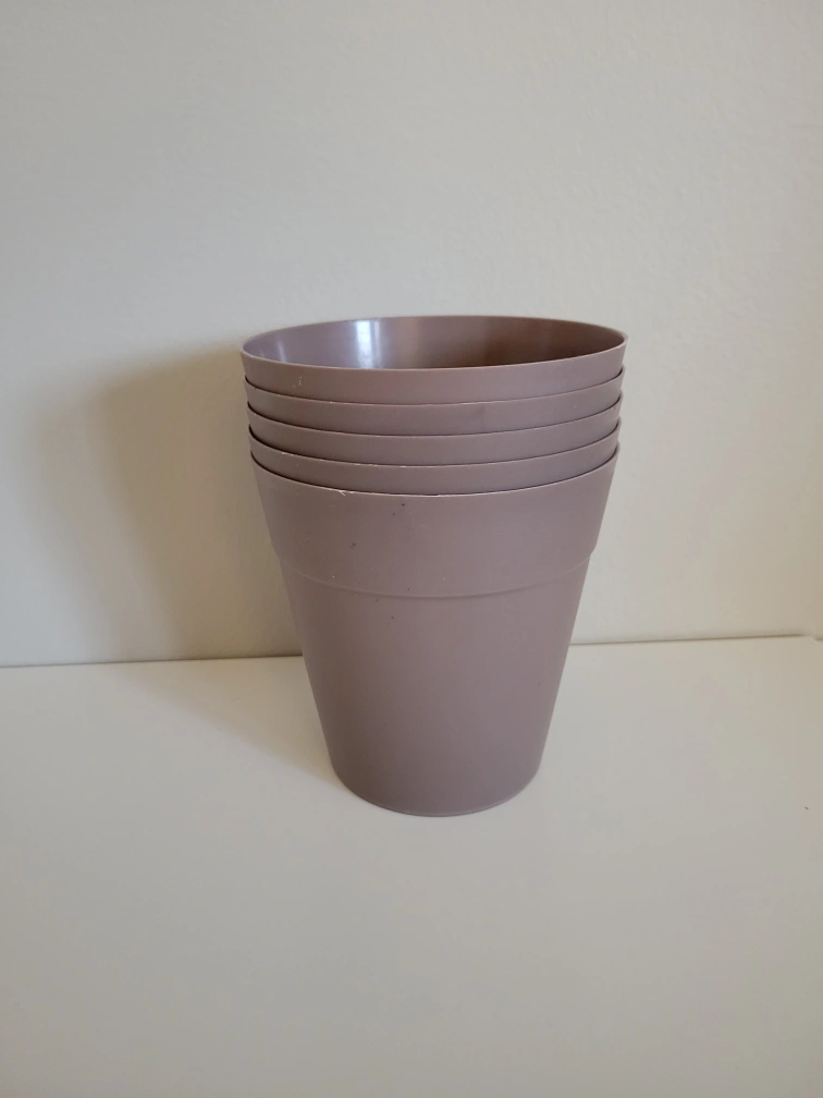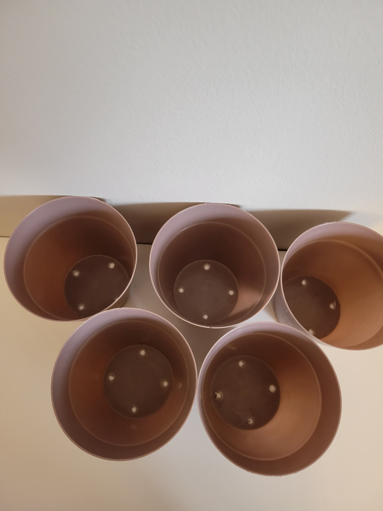 height 5in diameter 5in at top diameter 3.25in at bottom plastic pots no damage, perfect condition. used some of them. selling because I'm downsizing plants & plant supplies Pick up at Yonge/College