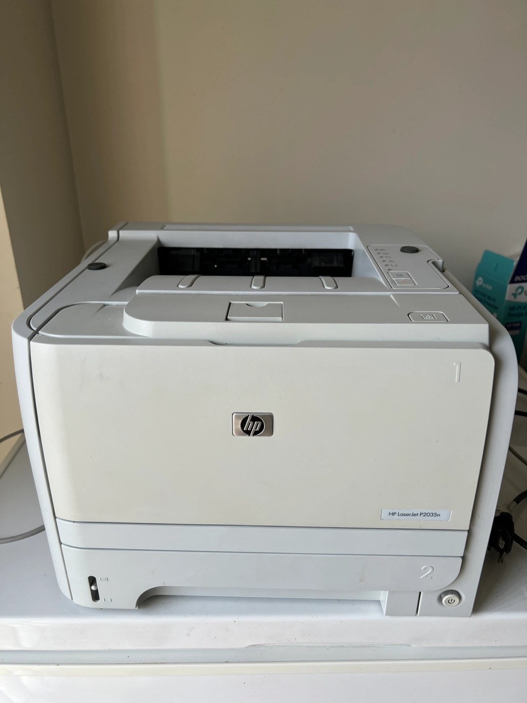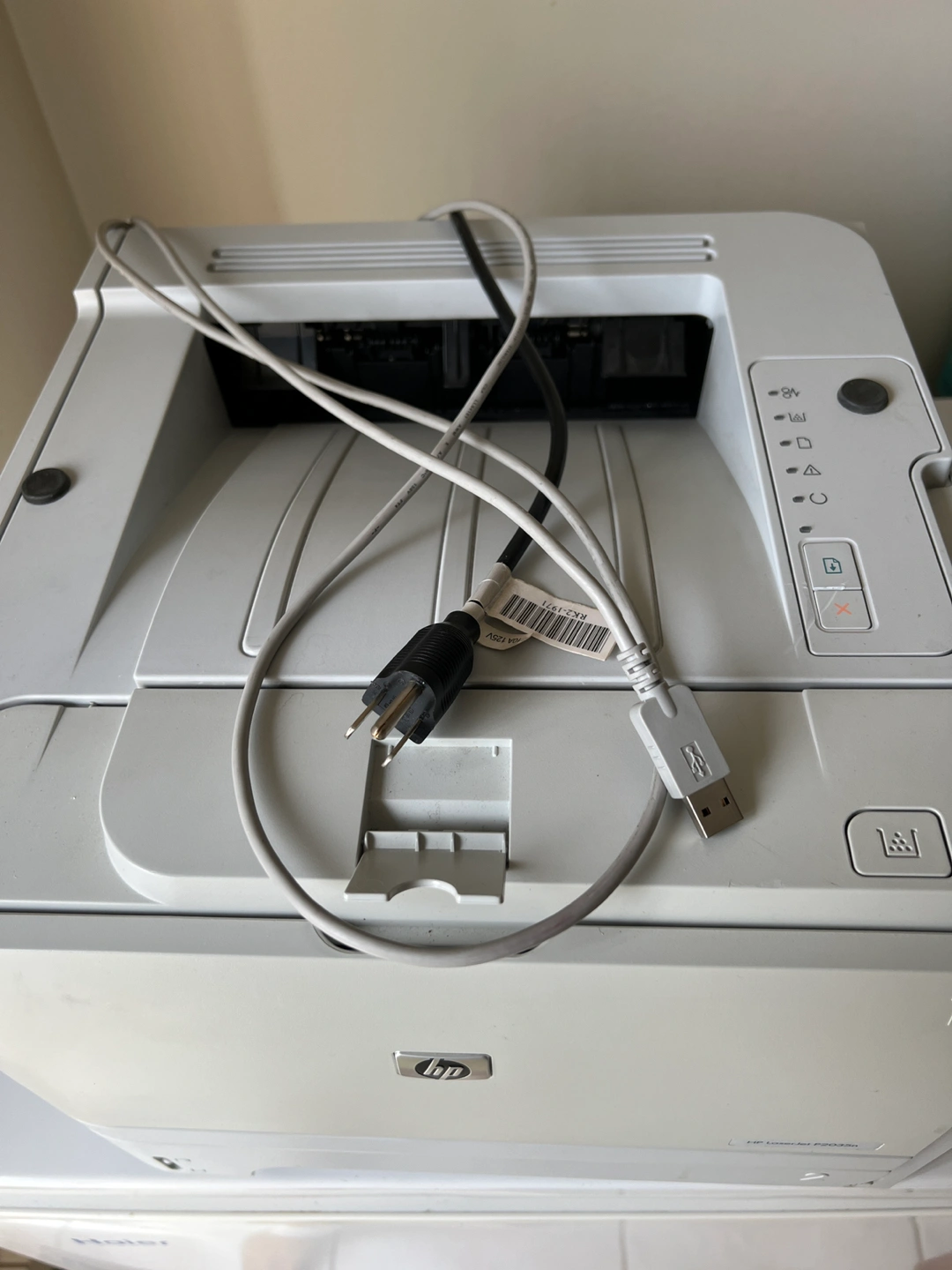 An older printer without scanning and copying capabilities. But it is in excellent working condition. Treated well with no hiccups or concerns. Has been used up to last month to print. Comes with USB cord to attach to your laptop or CPU. Code name in the pics