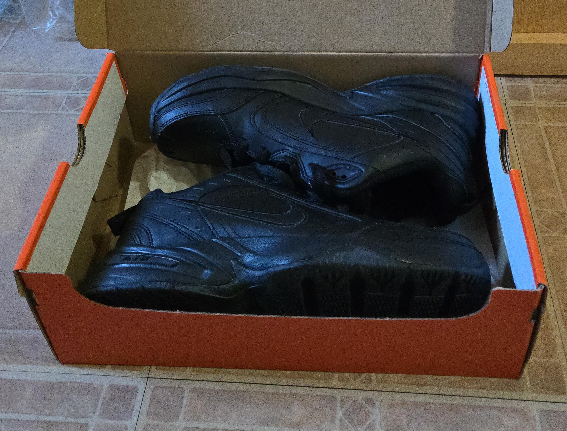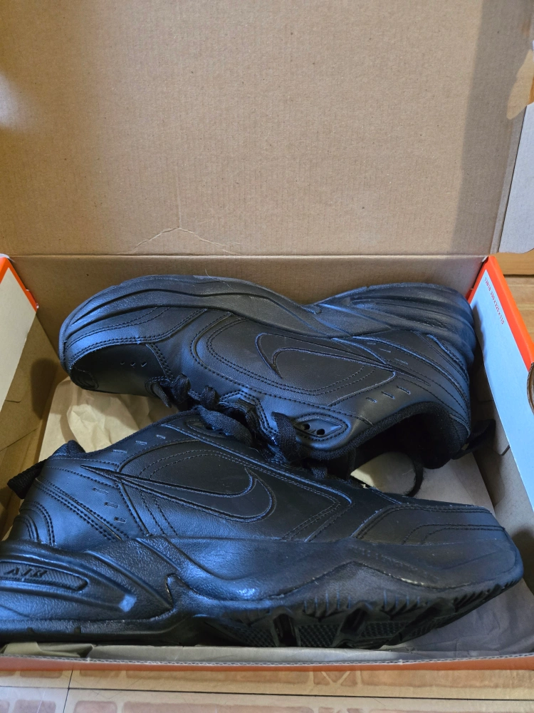 Selling a pair of Nike Air Monarch IV in black, size 8.5. They come with the original box. A classic and comfortable choice for everyday wear!