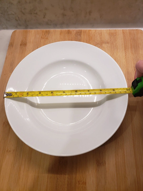 10 inches wide 2 inches tall. Please note: the plates have grey marks from use.