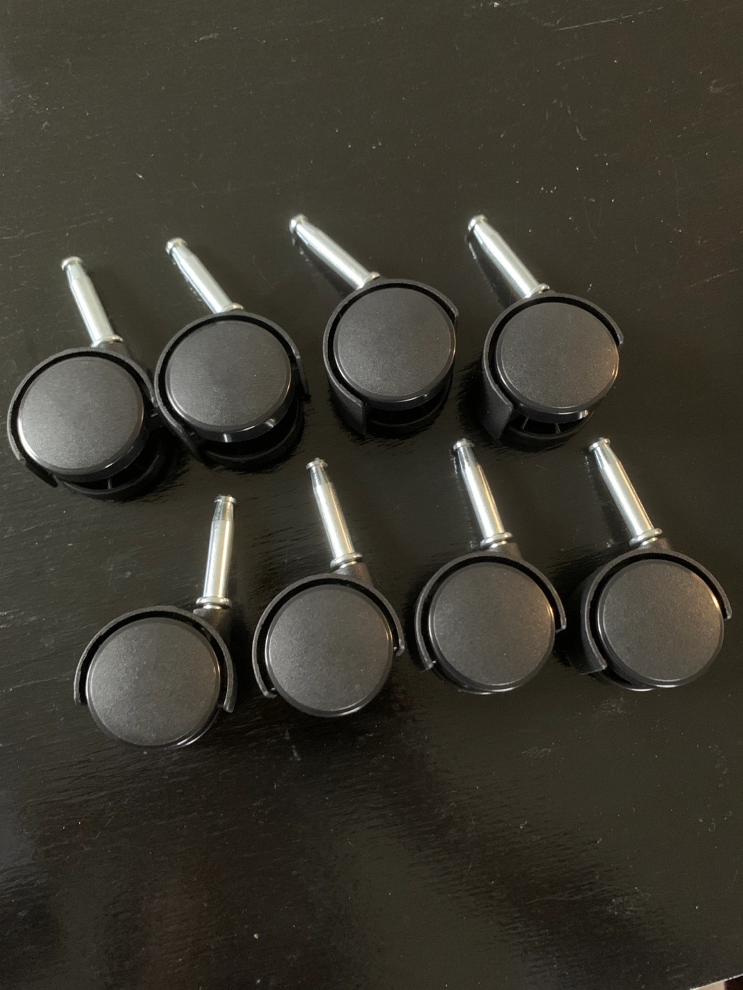 *CASH Only* Brand New Set of 8 black caster wheels. 360 degree rotation. Smooth and quiet. Each wheel has a weight capacity of 23 kg. [Check Out My Other Listings]